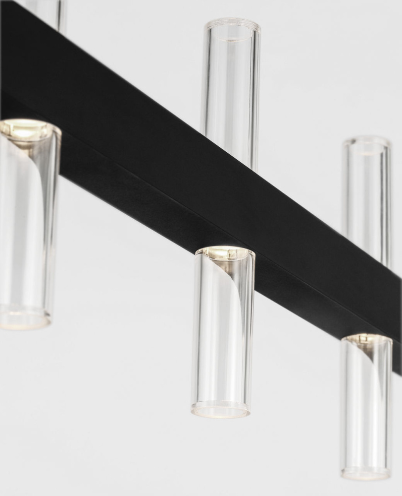 Silas 56" Linear by Sean Lavin features clean lines and precise detailing that define its minimalist character. Clear acrylic cylindrical diffusers pair With integrated LED light sources to create a crisp, modern effect. Each diffuser sits against a streamlined frame to emphasize balance and proportion without excess. With its elongated form, the 56" linear fixture is ideal for dining rooms, kitchen islands, home offices, and workspaces. The Silas Collection brings refinement to all contemporary interiors, offering lighting that is both sculptural and functional.