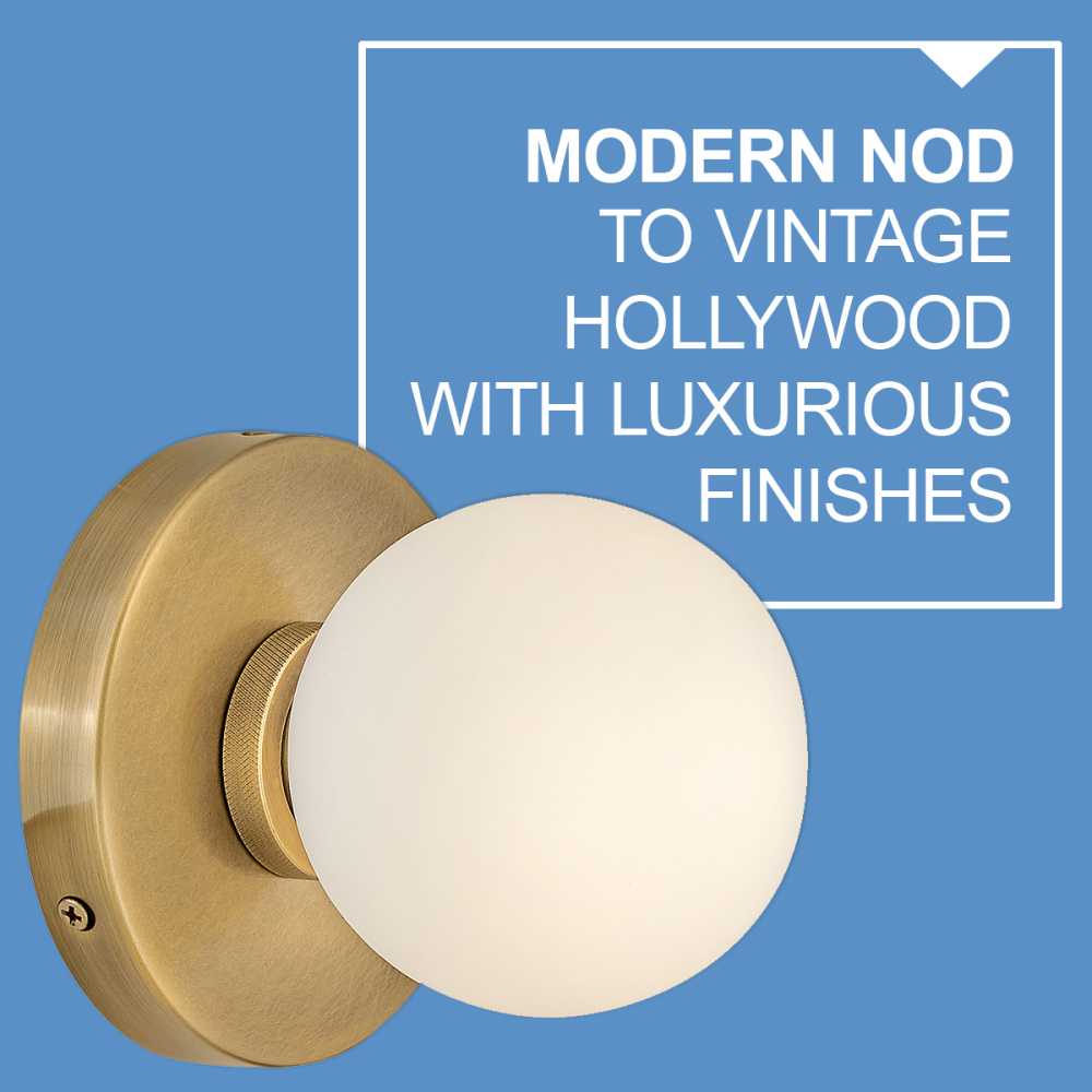 Audrey gives a modern nod to vintage Hollywood vanity lights thanks to luxurious finishes and beautifully knurled details that offset etched opal glass globes. Audrey incorporates the best of both transitional design elements and mid-century-inspired style. Available in Heritage Brass or Black Oxide finish options, this versatile fixture can be mounted horizontally or vertically for added customization.