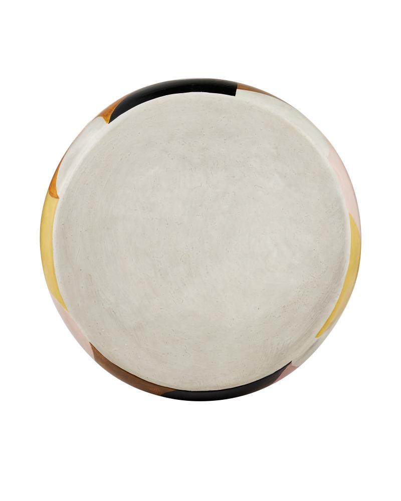 Made of terracotta with blue, pink, black, rust, and yellow pops of color, the So Nouveau Pink Accent Table belongs in the Art Decoratifs, or Art Deco, category thanks to its strong hues and graphic qualities. The elegant multicolored accent table has a shape that will add interest to its spot in a room. Because this colorful table is hand-painted, it is an artisanal piece and the patterns may vary slightly from piece to piece.