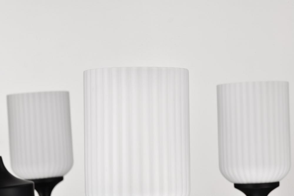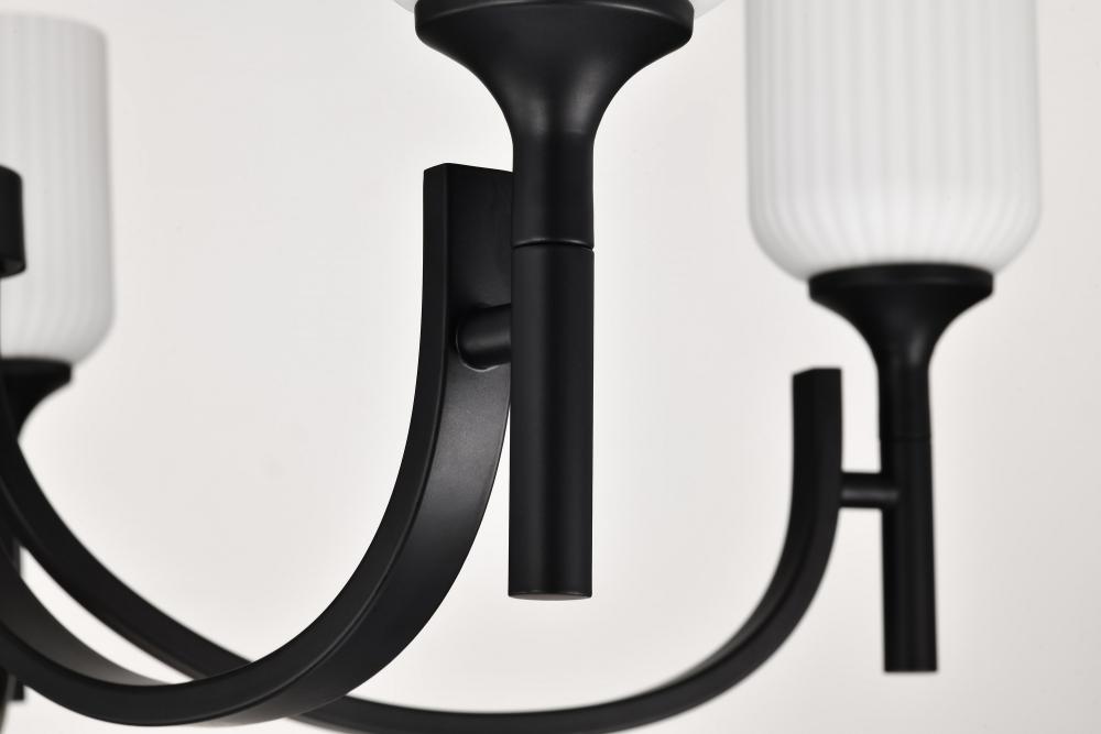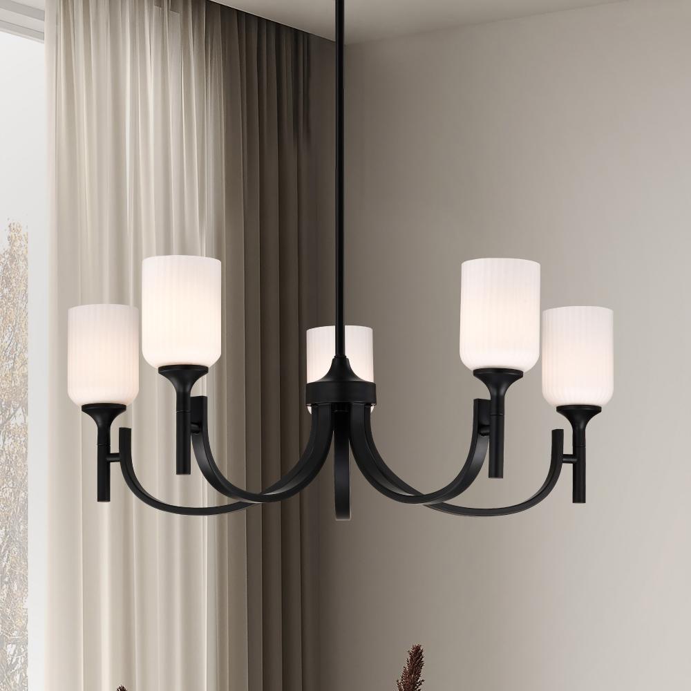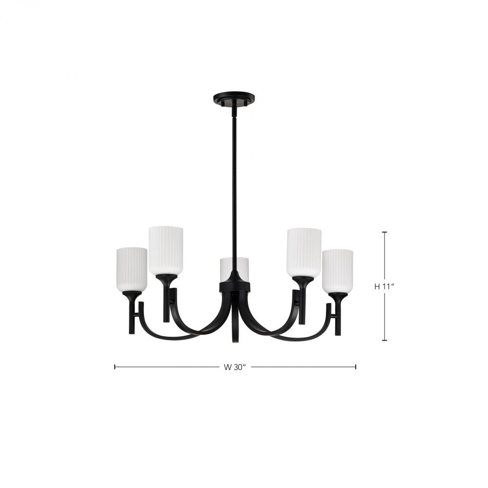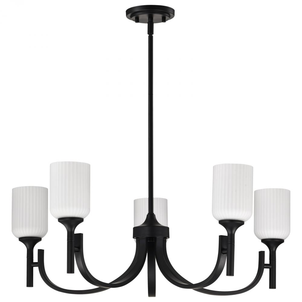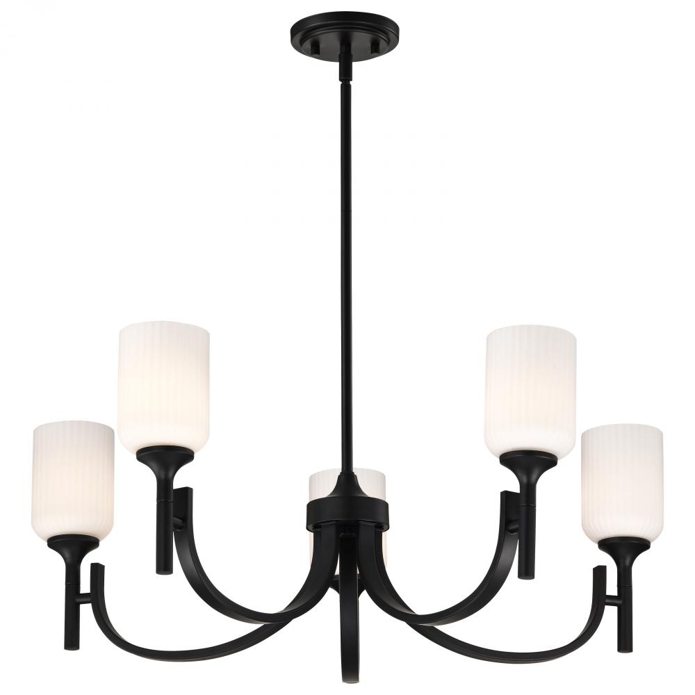 Solara; 5 Light Chandelier; Matte Black Finish; Frosted Ribbed Glass