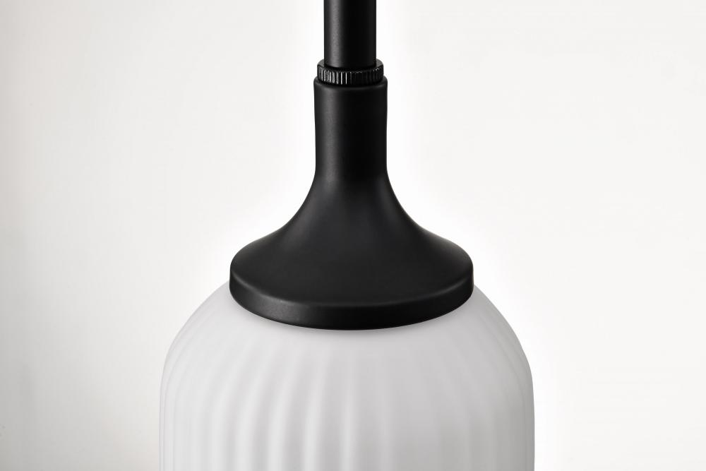 Solara; Mini Pendant; Matte Black Finish; Frosted Ribbed Glass
