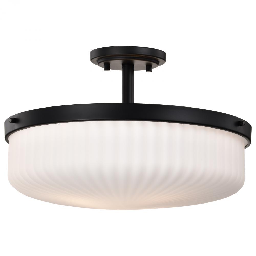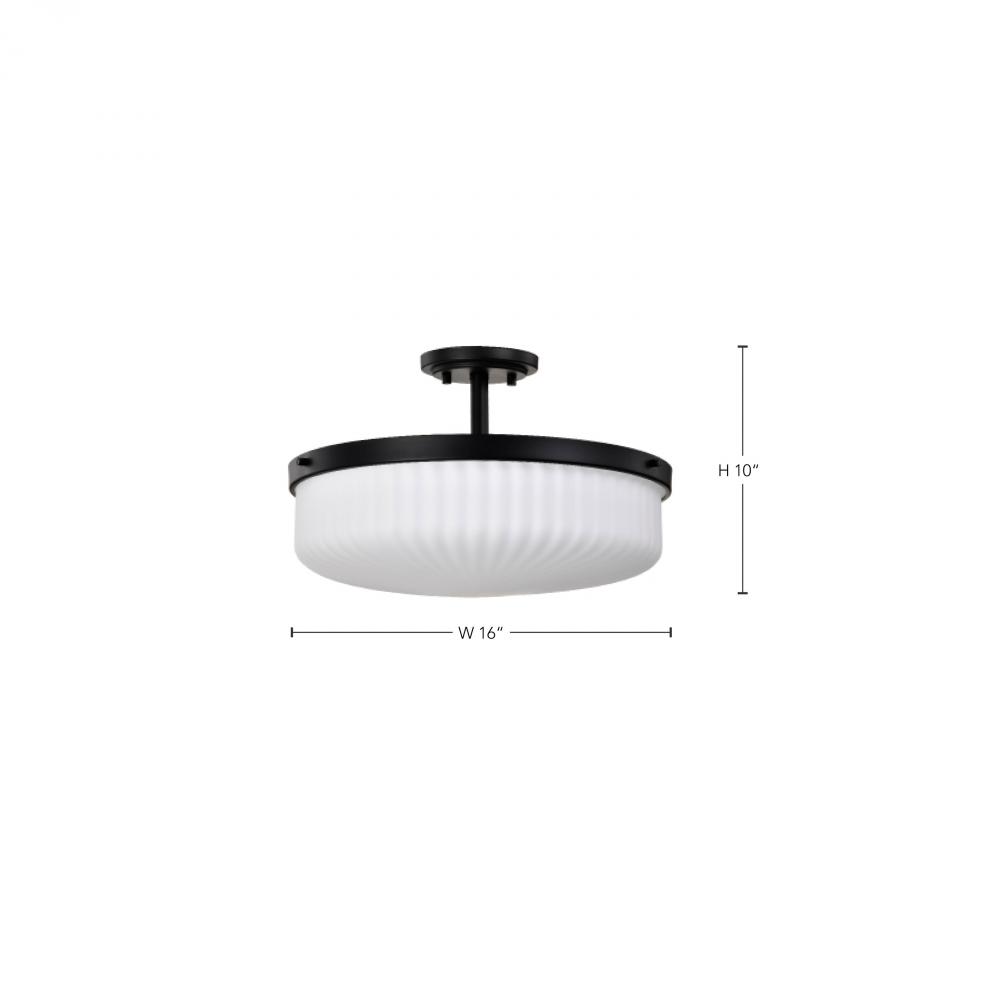 Solara; Semi Flush Mount; Matte Black Finish; Frosted Ribbed Glass
