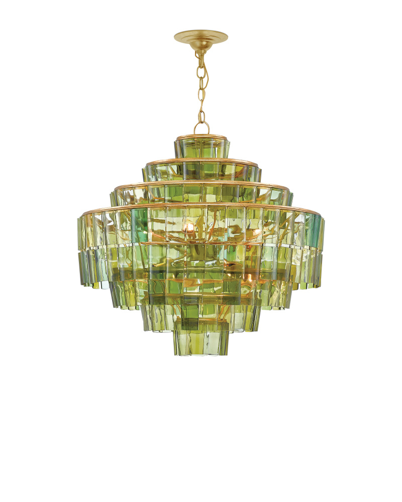 The distinctive green hues of the recycled wine bottles used to make the Sommelier Chandelier bring this fixture its feeling of luminosity. Natural uneven textures on the hanging glass pieces affixed to the green chandelier are accentuated by a dark contemporary gold leaf finish. Adjustable from 31" to 100" with use of included chain/rod kit/cable. If your space calls for a longer drop, additional chain/rods/cable is available for purchase.
