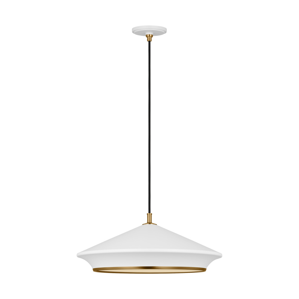 Inspired by mid-century modern designs, the Stanza series is a group of new cone-shaped pendants in light and dark silhouettes with chic accents in brass – trimming them at the top and bottom. Its carefully minimal design brings your eye to the trim, where its burnished Brass finish provides exciting contrast. A matching holder ties it all together. Stanza is a charming pendant series that will bring a touch of retro-modern style to any space.