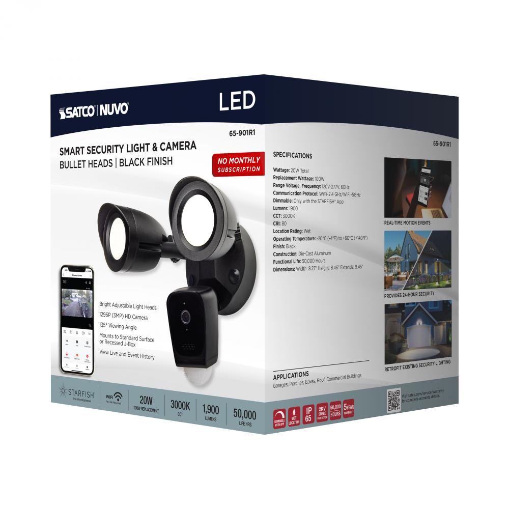 Starfish; Bullet SMART Security Light w/Camera; 20 Watt; 3000K CCT; Black Finish; 120-277 Volt