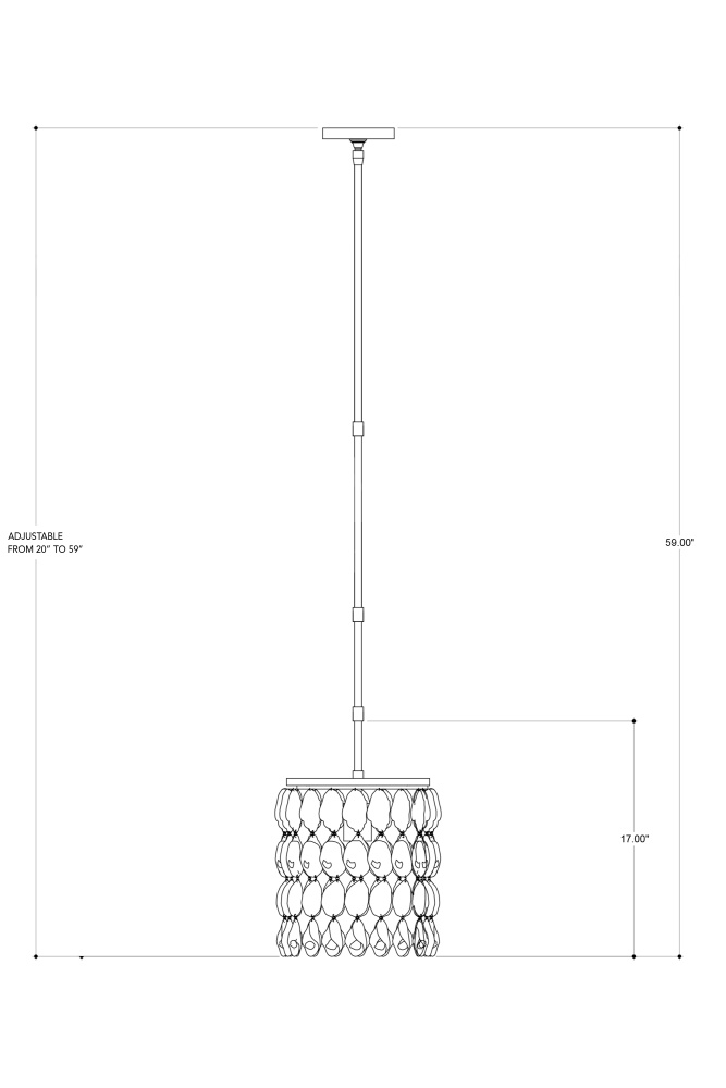 The Stillwater Pendant dangles strands of hand-selected oyster shells from a wrought iron frame in a blacksmith finish. This versatile shell pendant illustrates the artistry with which our design team approaches natural, nautical materials. Adjustable from 20" to 59" with use of included chain/rod kit/cable. If your space calls for a longer drop, additional chain/rods/cable is available for purchase.