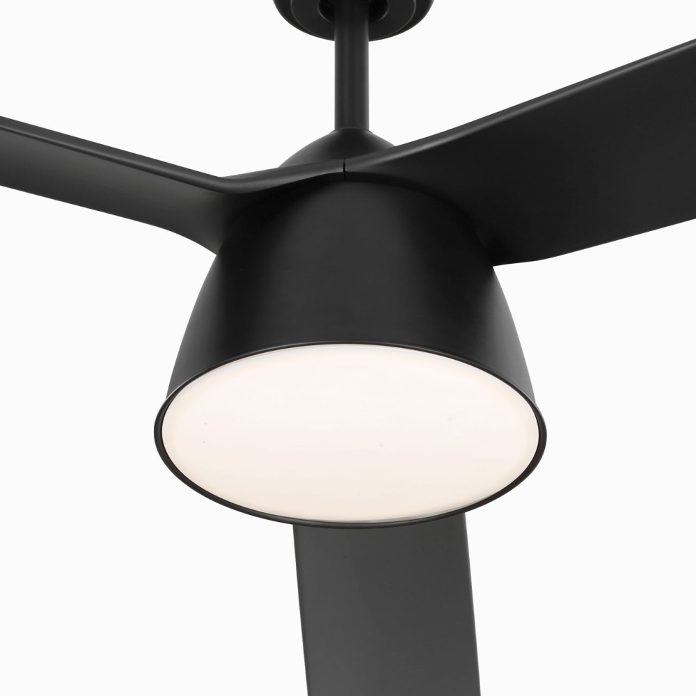 The Studio Smart 60 by Peter Bristol combines utility and architectural clarity with its extended flat blades positioned above a conical light fixture. The industrial design conceals the motor within the light, producing a streamlined profile that integrates seamlessly into lofts, studios, and modern interiors. Scaled for larger, open spaces, Studio balances air circulation and illumination within a single unified form.