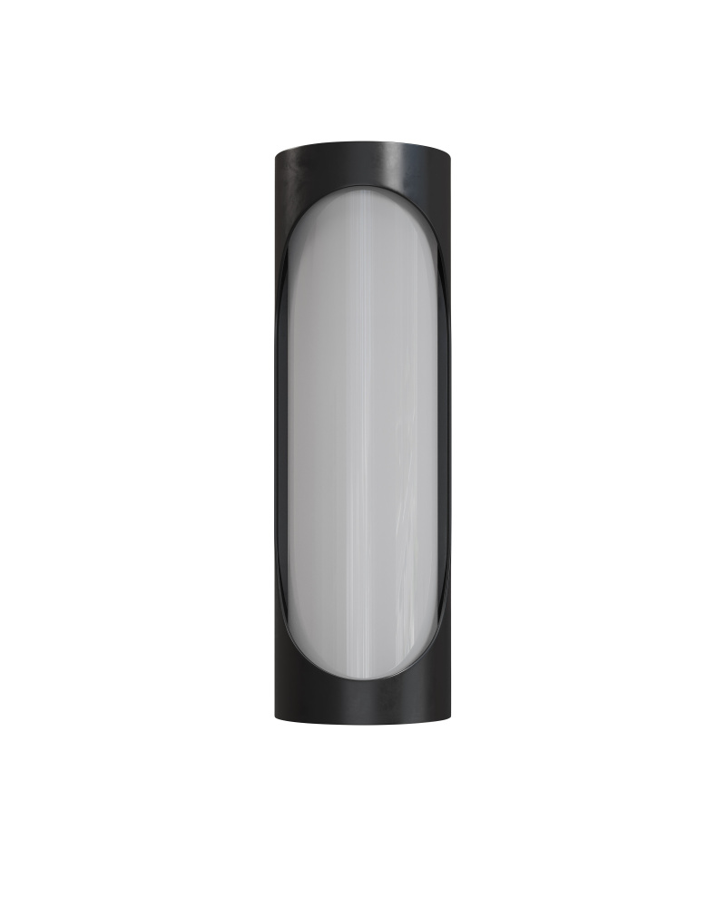 The Swale Large Outdoor Wall Sconce has a graphic silhouette with cut outs where illumination can escape. The front of the black sconce is covered with a milky white glass that illuminates uniformly when the integrated LEDs shine through it. The metal is powdercoated to make this outdoor sconce weather worthy.