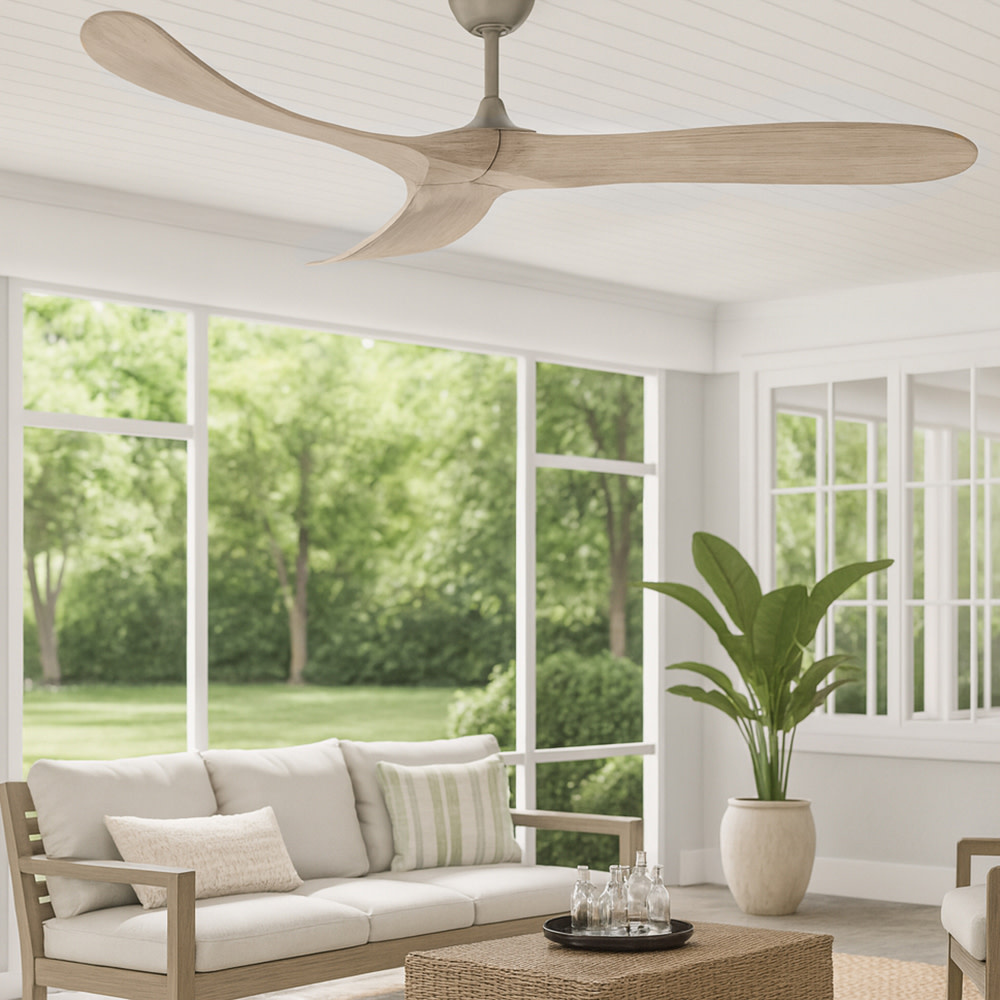 Damp rated fans are ideal for fully covered outdoor areas, bathrooms, garages, and sunrooms