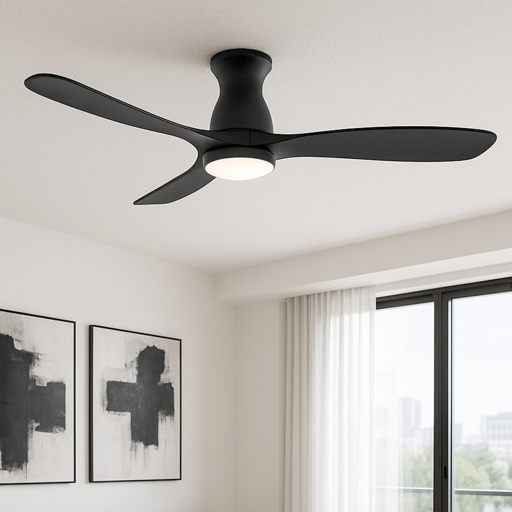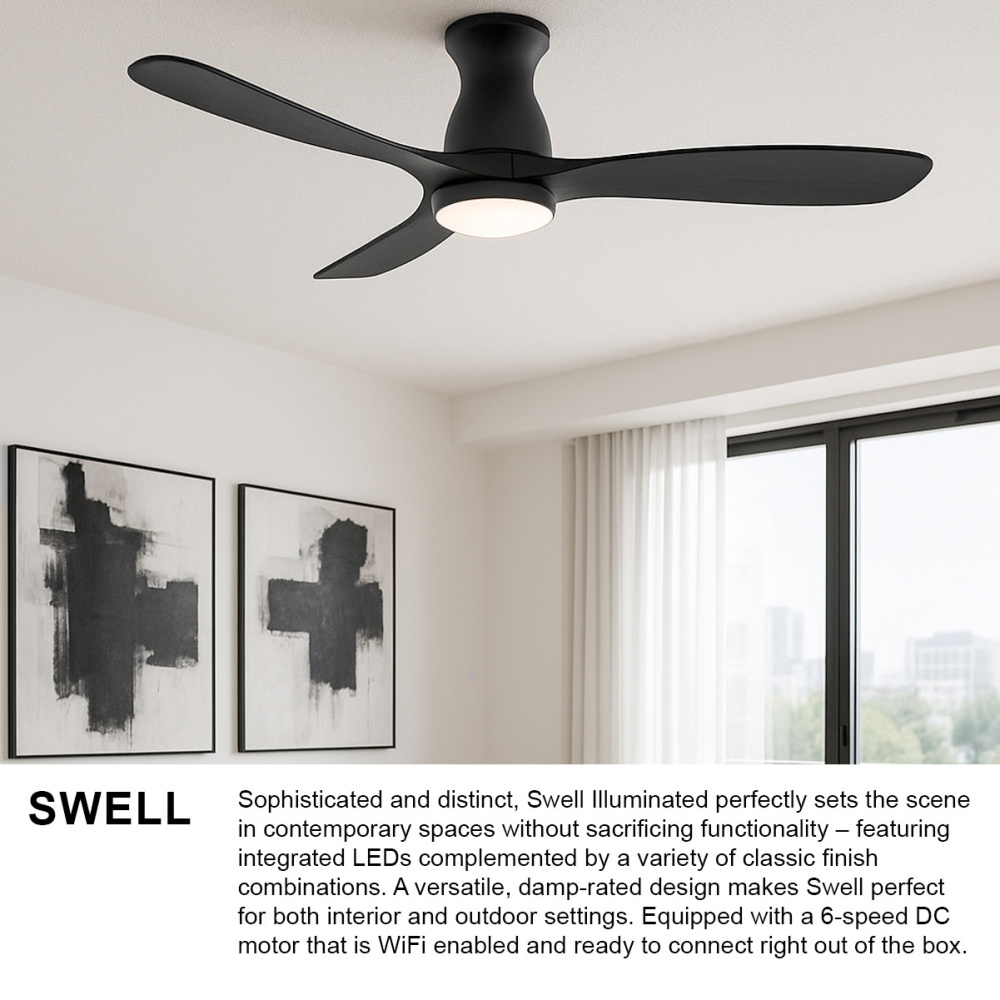 Sophisticated and distinct, Swell Flush Illuminated perfectly sets the scene in contemporary spaces without sacrificing functionality - featuring a low-profile silhouette with integrated LEDs complemented by a variety of classic finish combinations. A versatile, damp-rated design makes Swell perfect for both interior and outdoor settings. Equipped with a 6-speed DC motor that is WiFi enabled and ready to connect right out of the box. Operated by the HIRO control or WiFi compatible with the Hinkley app.