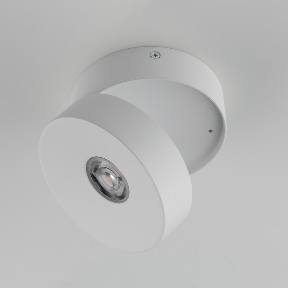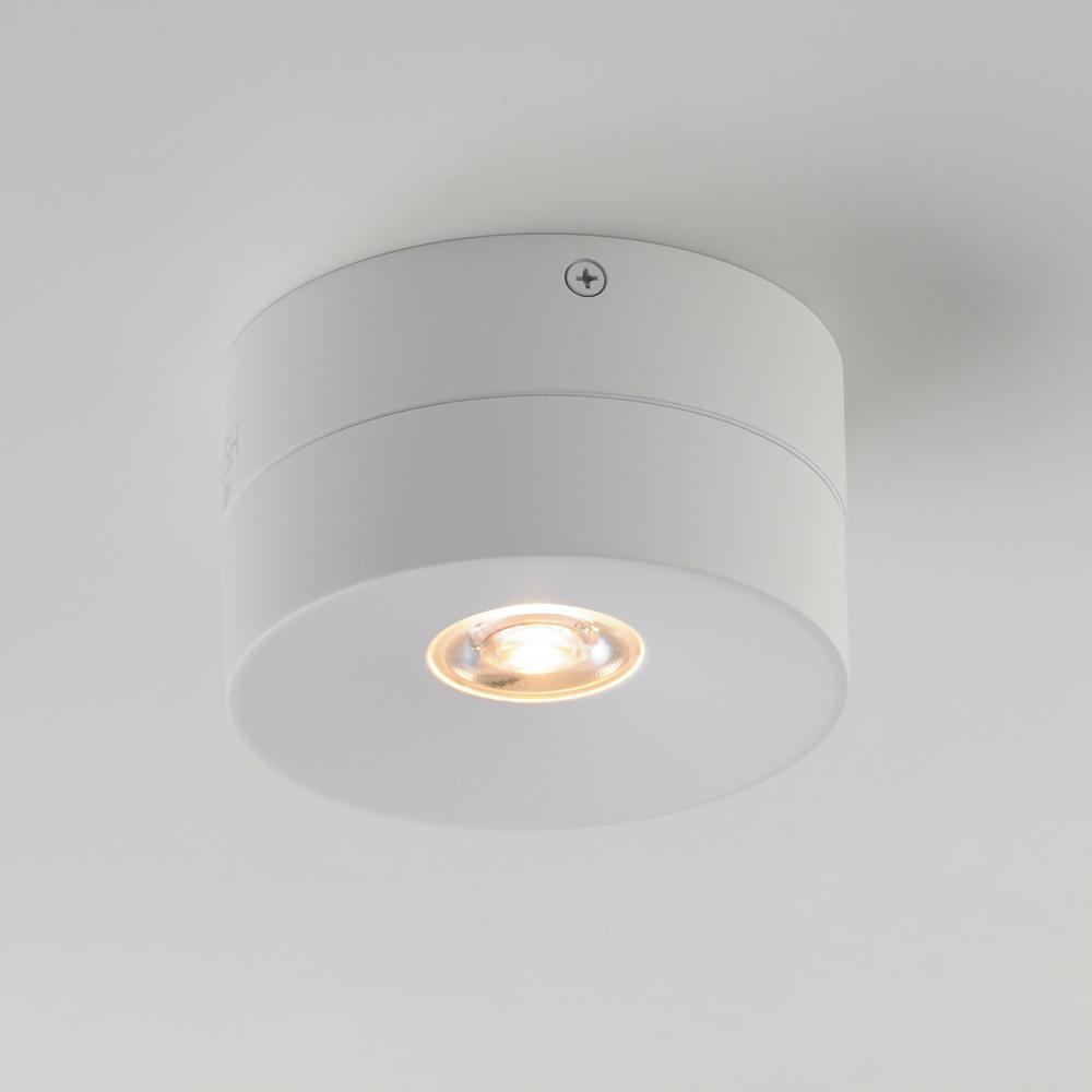Inconspicuously recessed within its cylindrical house, an extending arm transforms this surface mounted light fixture into an adjustable spotlight. Simply unthread the top half along the seam to extend the frame length and swing the fixture into position.