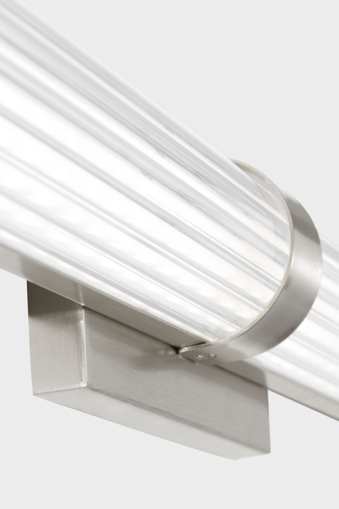 Syden is crafted of steel With clean-lined backplate and ridged glass shade. This understated detailing makes for a versatile design, at home in either modern, transitional or traditional interiors. Syden can be mounted horizontal or vertical.