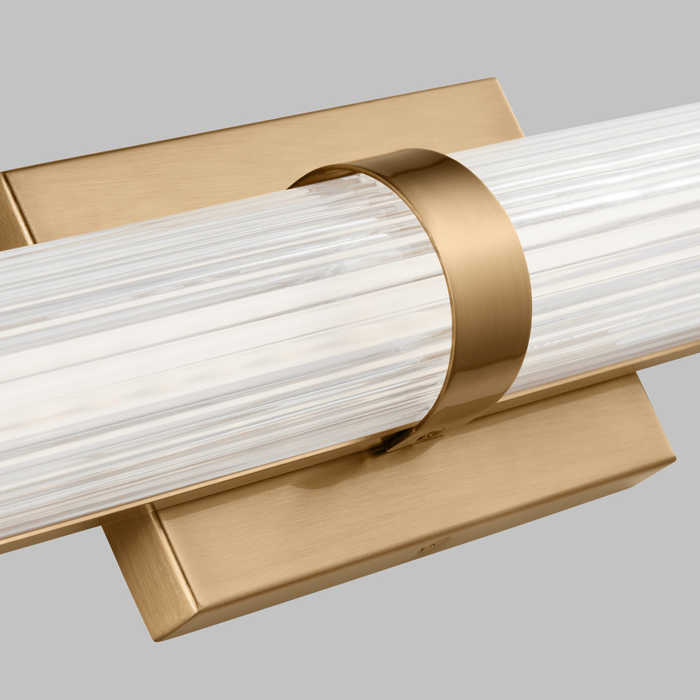 Syden is crafted of steel with clean-lined backplate and ridged glass shade. This understated detailing makes for a versatile design, at home in either modern, transitional or traditional interiors. Syden can be mounted horizontal or vertical.