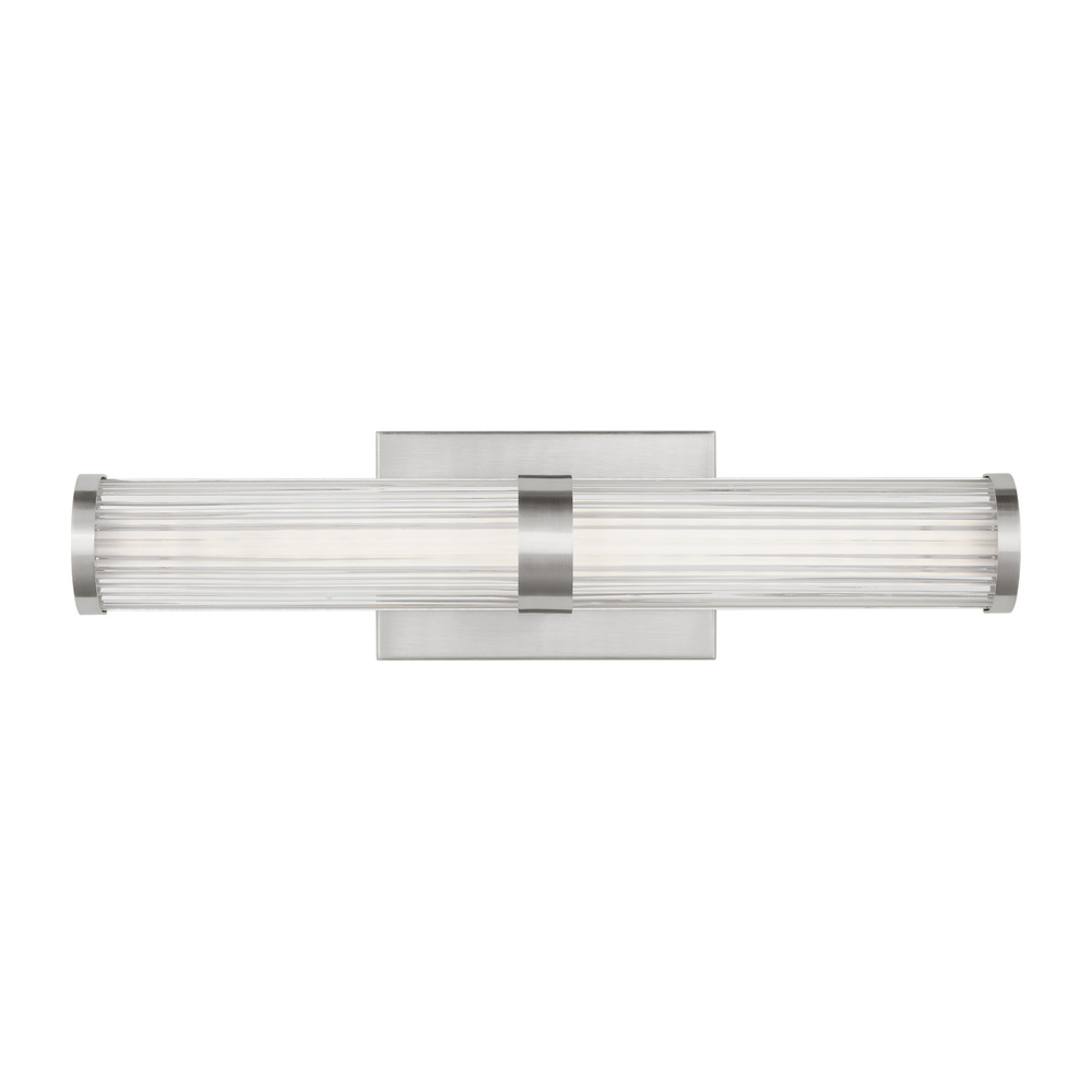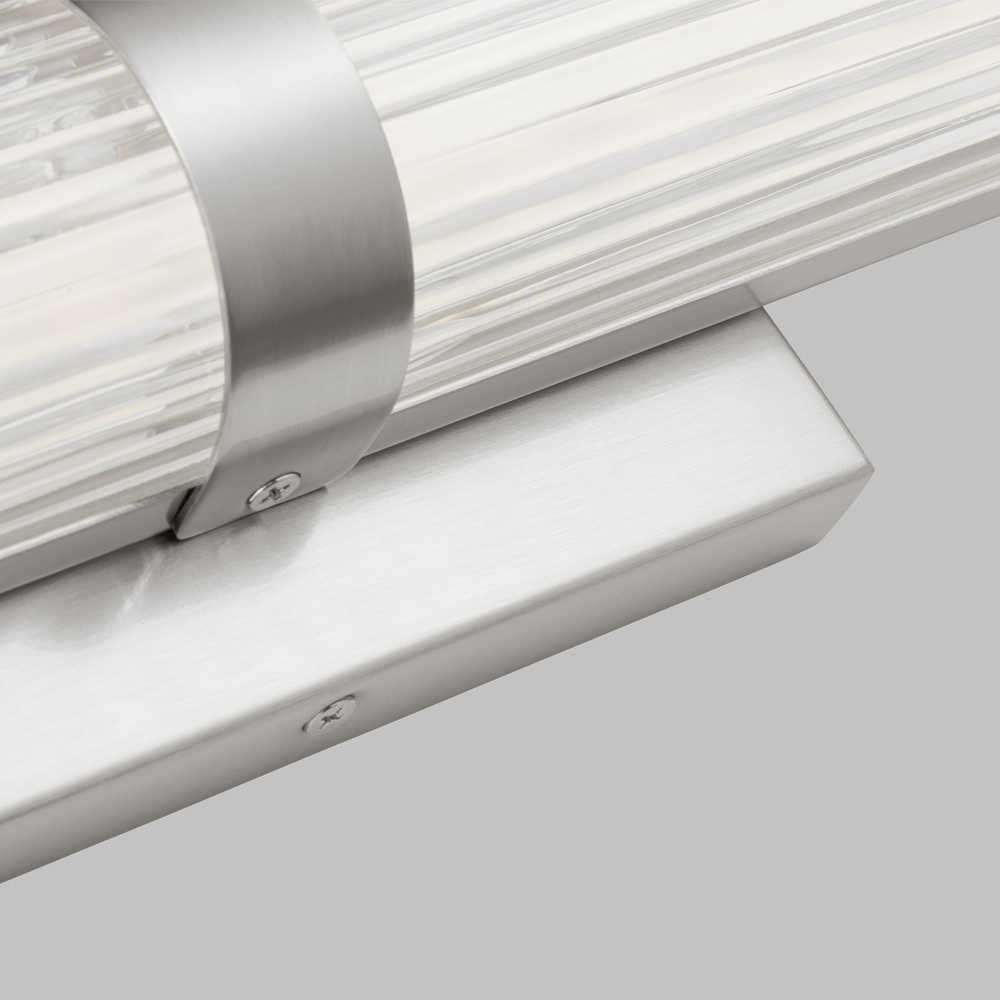 Syden is crafted of steel with clean-lined backplate and ridged glass shade. This understated detailing makes for a versatile design, at home in either modern, transitional or traditional interiors. Syden can be mounted horizontal or vertical.