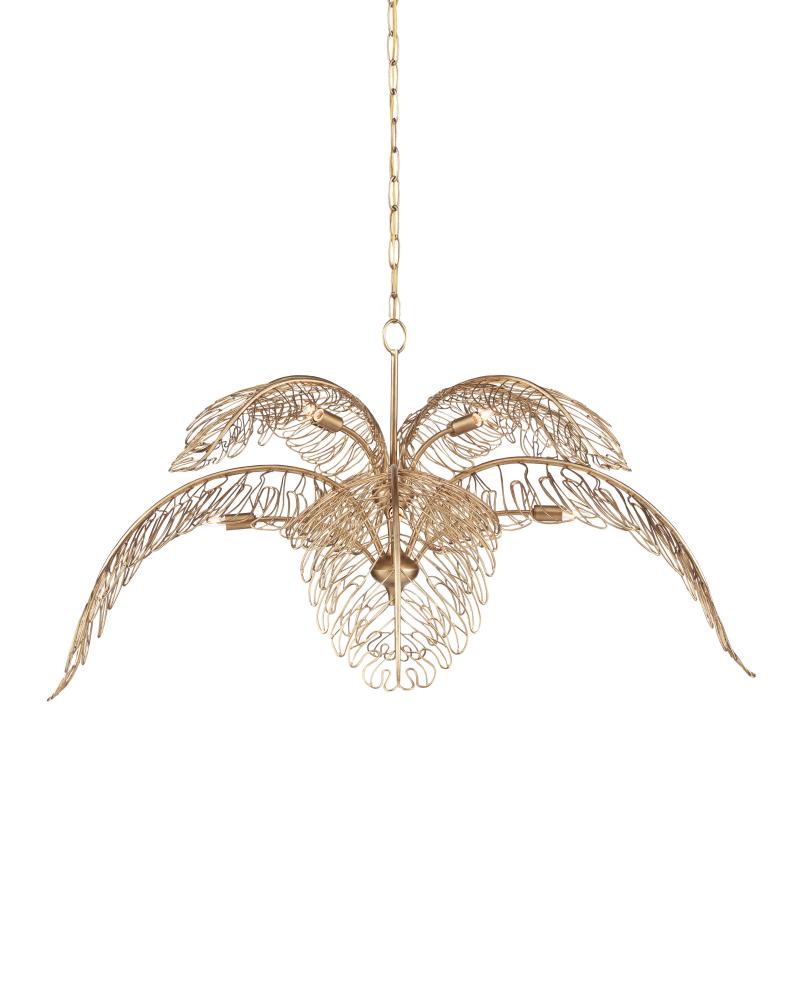 With its Italianate influences, the Taormina Chandelier is a handmade wonder. The metal wire from which it is made is hand-formed. Creating delicate leaf shapes from wire made of wrought iron is no small feat. The new brass finish on the gold chandelier brings it a warmth though the composition remains light and airy. Adjustable from 31" to 99.50" with use of included chain/rod kit/cable. If your space calls for a longer drop, additional chain/rods/cable is available for purchase.