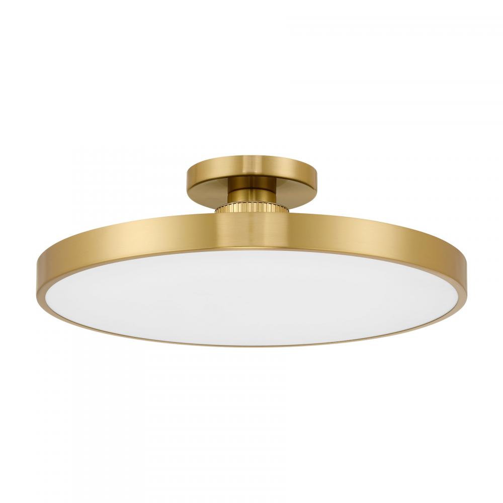 The Savoy House Thayer ceiling semi-flush mount is a superbly sleek contemporary design, perfect for any space. Its slim design, finished in Warm Brass, showcases a shade of etched white glass that provides bright yet comfortable illumination through the use of integrated LED. Thayer is 6" in height and 20" in width. The integrated LED provides 5000 lumens at 3000K with a 90 CRI.
