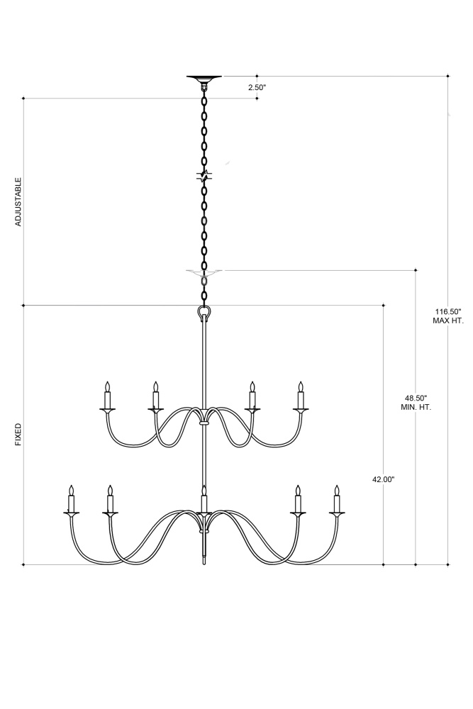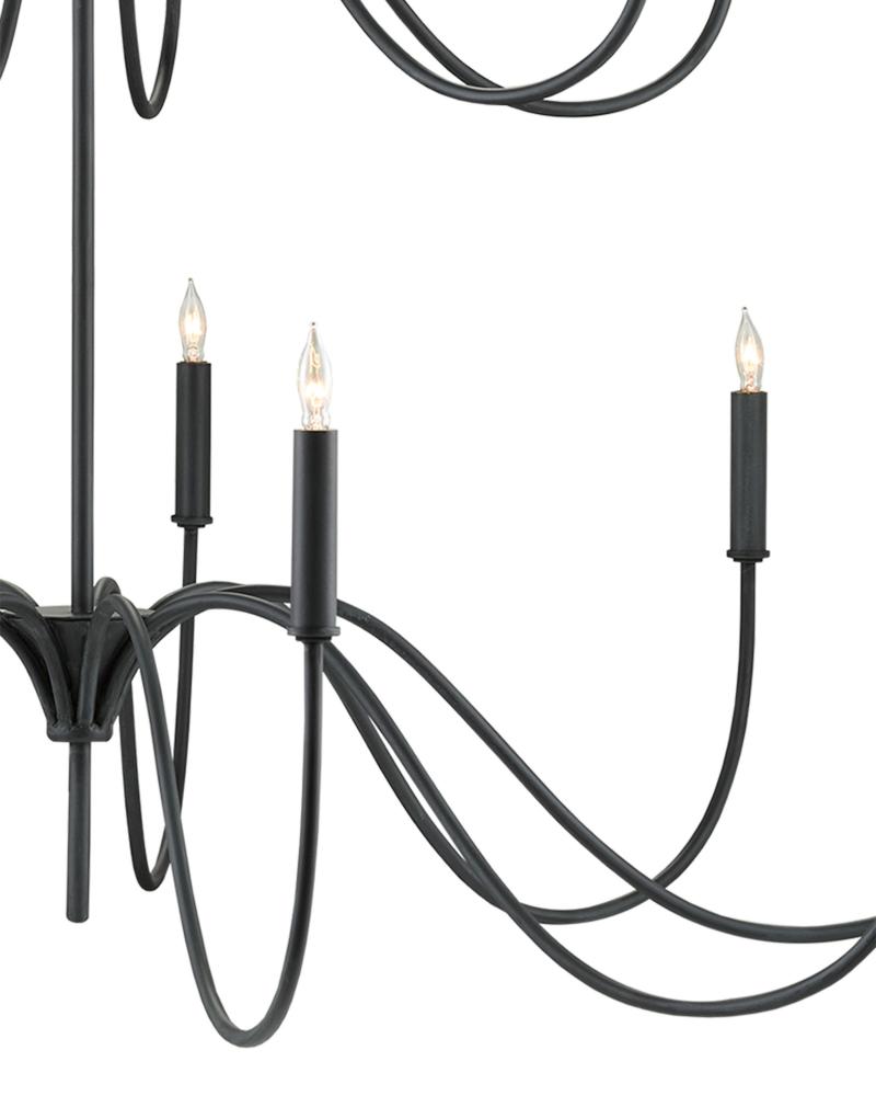 A nod to Early American style, the Tirrell Medium Chandelier has graceful arms that arc upward to hold its candle sleeves with simple dignity. The black chandelier is made of wrought iron in an antique black finish. Adjustable from 48.5" to 116.5" with use of included chain/rod kit/cable. If your space calls for a longer drop, additional chain/rods/cable is available for purchase.