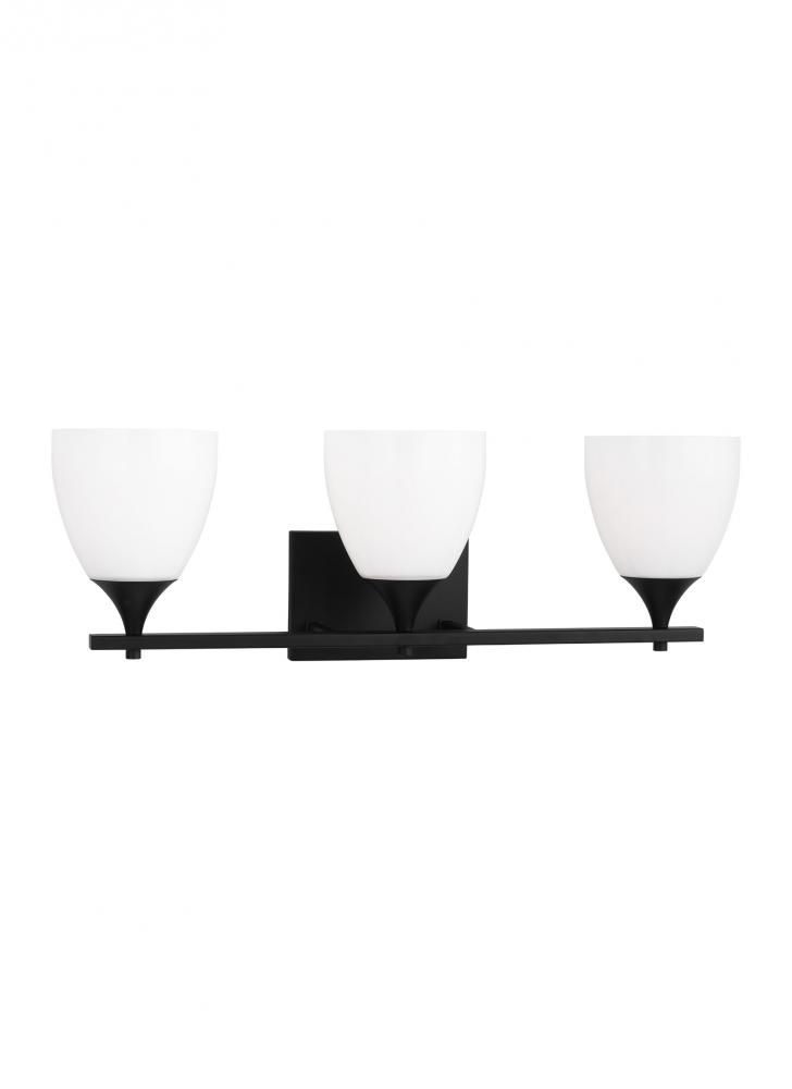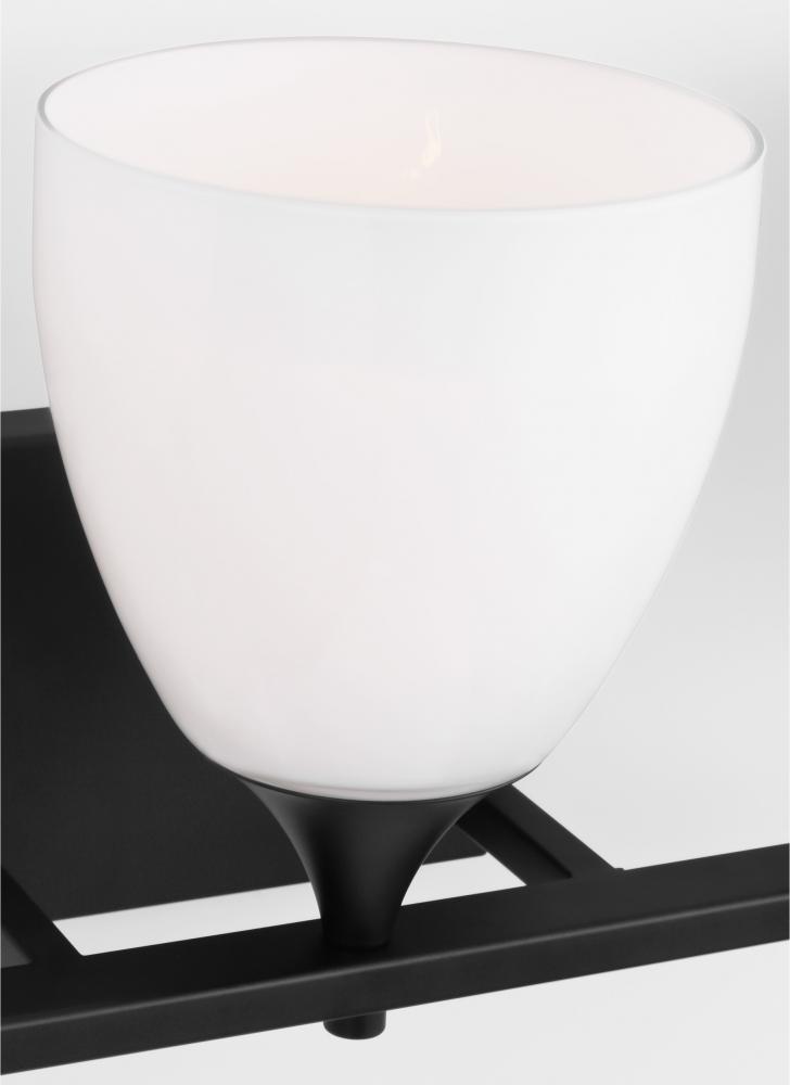 Made to coordinate across a broader range of bath hardware and design styles, this light breathes new life to its traditional shape with milk glass shades and striking, modern finishes
