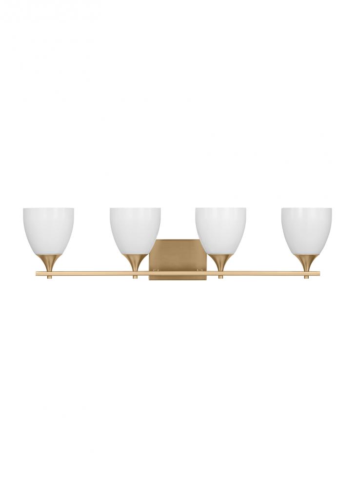 A modern take on a classic design, the Drew & Jonathan Toffino Four Light Wall / Bath Sconce breathes new life to its traditional shape with milk glass shades and striking, modern finishes. Made to coordinate across a broader range of bath hardware, the Toffino is available in four popular finishes, Brushed Steel, Chrome, Midnight Black, and Satin Brass, and looks great on its own or installed above a bathroom vanity. This fixture may be mounted in the up or down position, and is cETL listed for damp locations, making it the perfect lighting solution for any space.