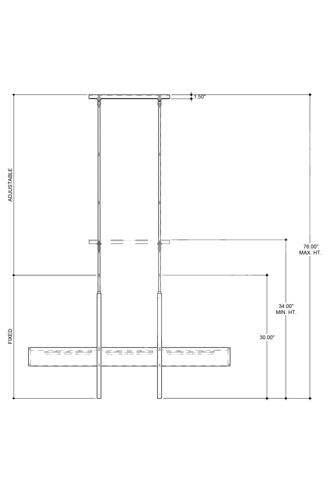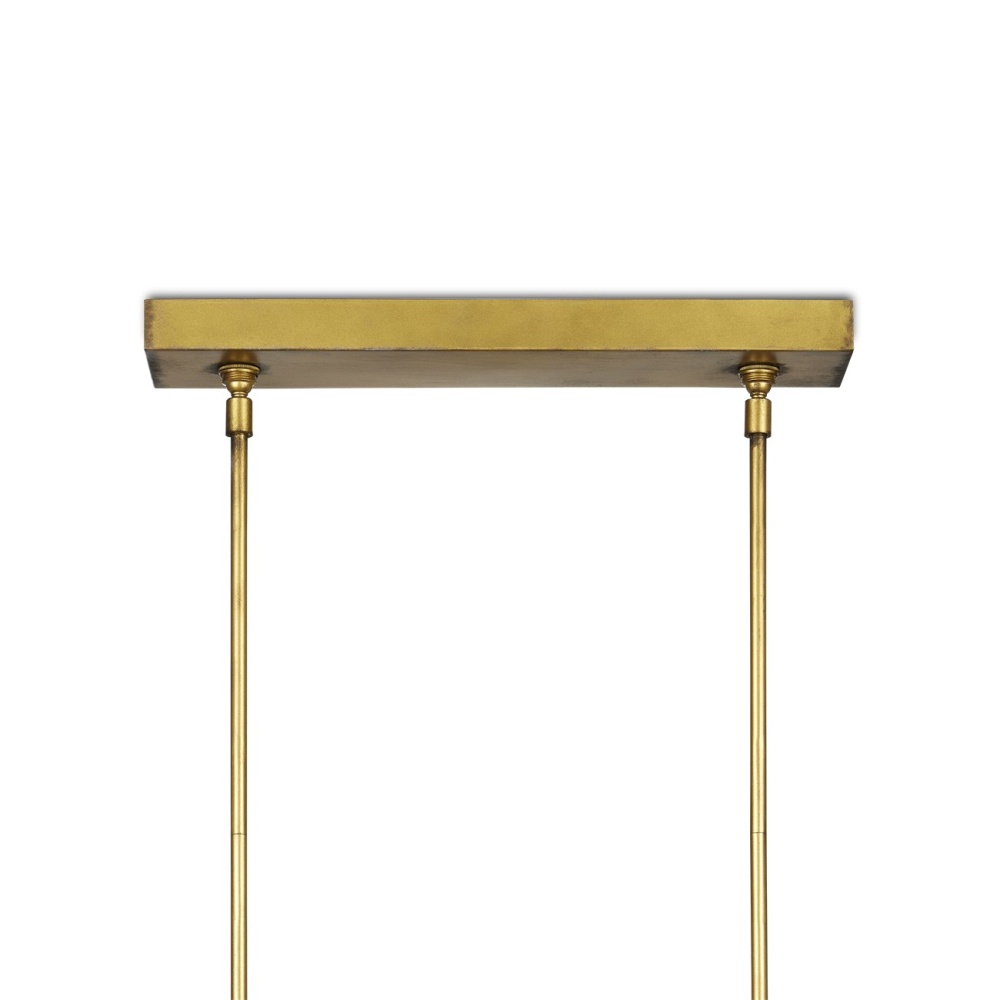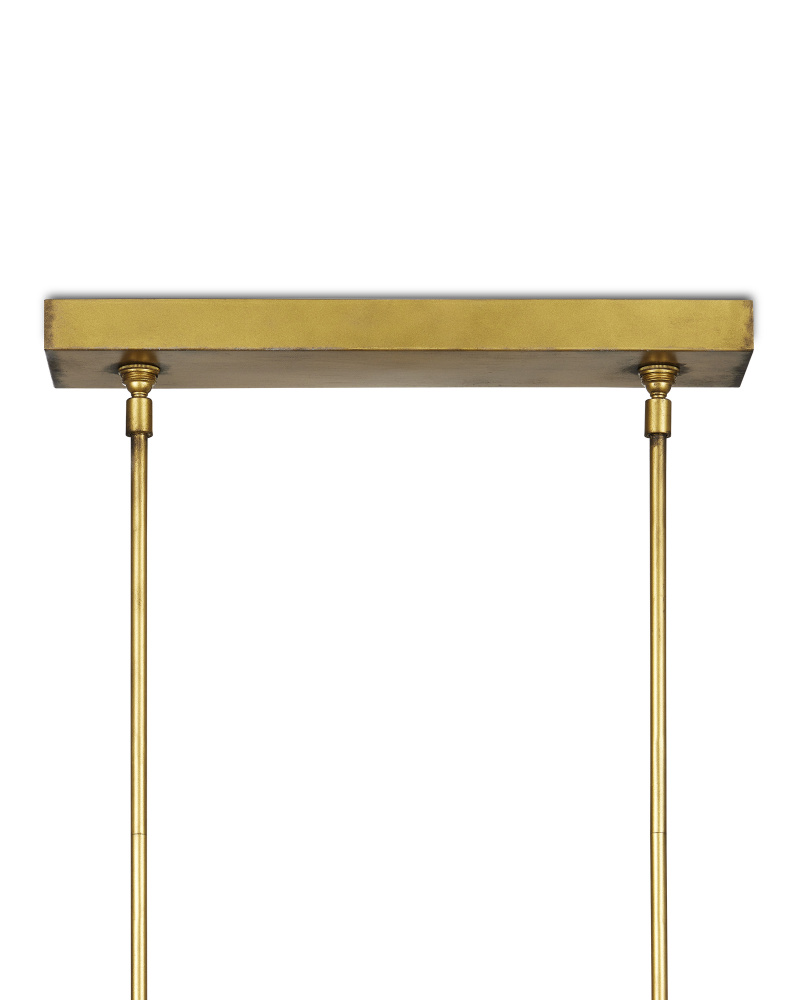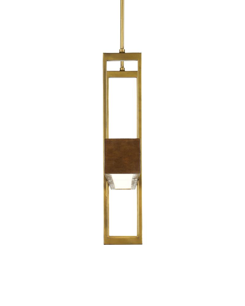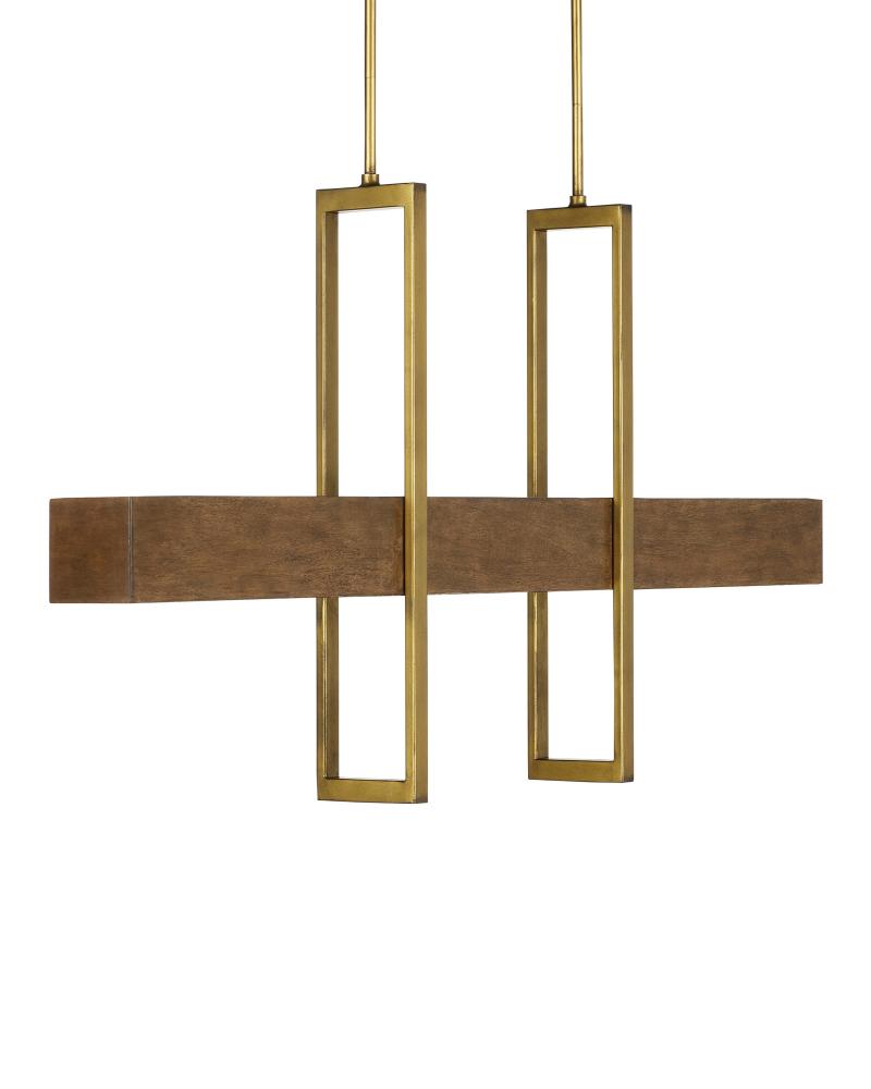 A sophisticated arrangement of rectilinear shapes, the Tonbridge Linear Chandelier features a rich mix of materials. The vertical rectangles are made of metal in a painted brass finish, while the horizontal wood element showcases a warm chestnut wood finish. Designed with long kitchen counters and dining tables in mind, the wood rectangle is fitted with an acrylic diffuser to soften the illumination. A design detail of note is how the painted brass elements have a bit of antiquing on the corners. Adjustable from 34" to 76" with use of included chain/rod kit/cable. If your space calls for a longer drop, additional chain/rods/cable is available for purchase.