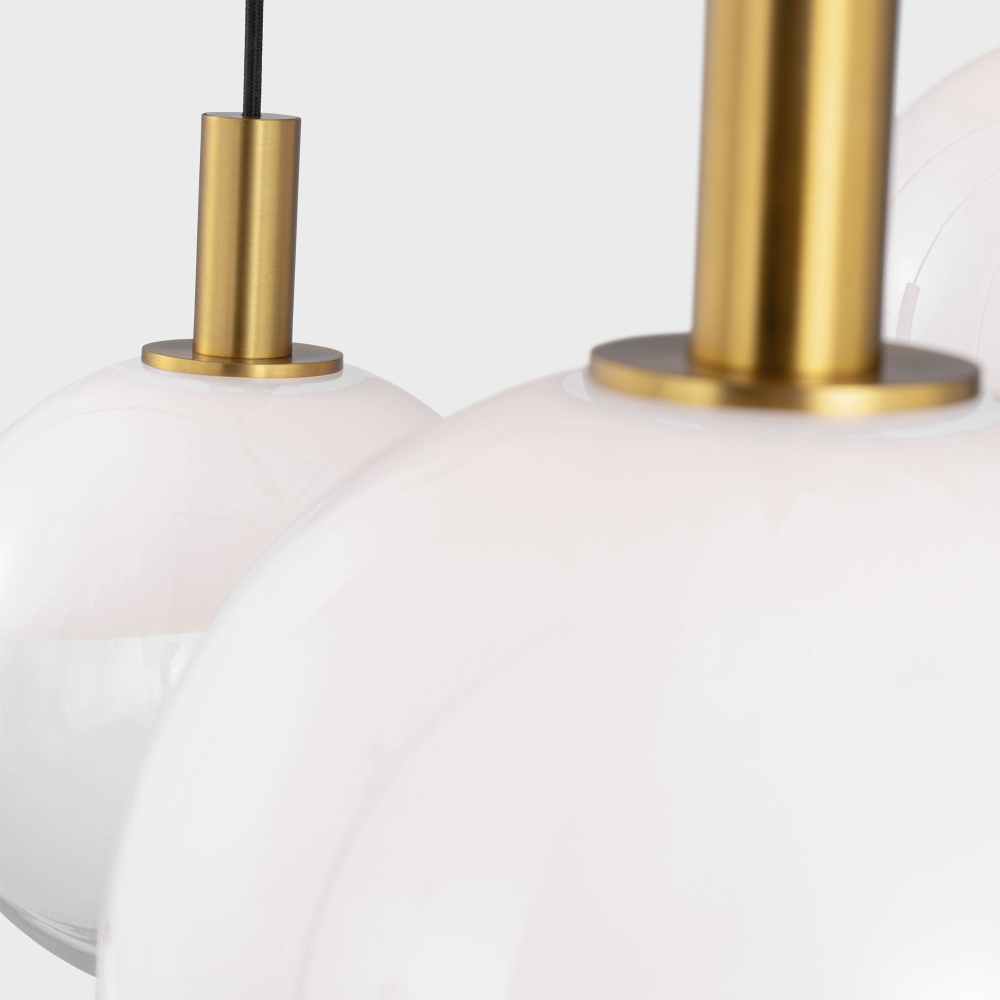 Crafted with Steel in a Burnished Brass finish with milk / clear glass mix glass shades