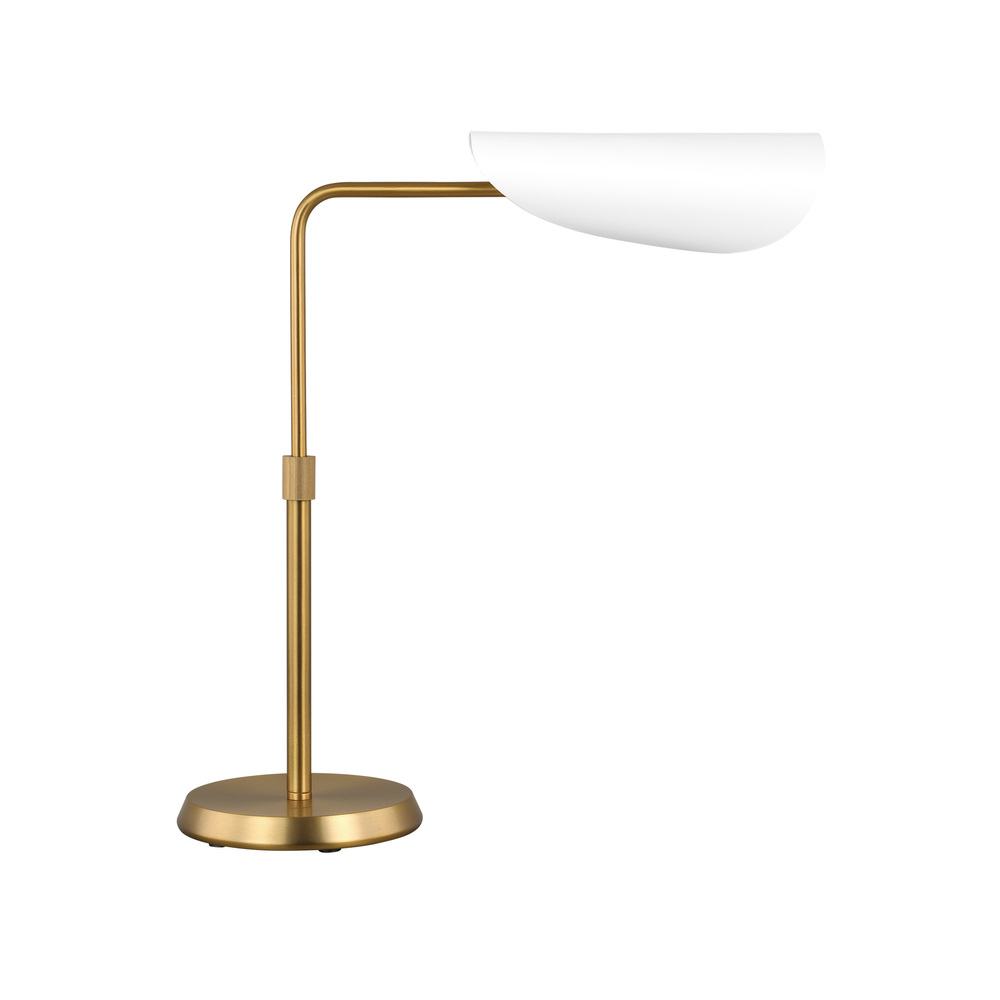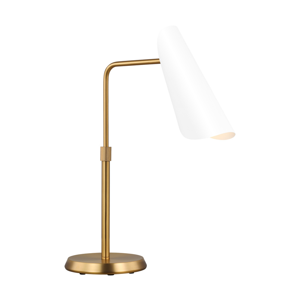 The Tresa one light table lamp is an adjustable table lamp featuring a metal shade inspired by the shape of classic task lighting, focusing illumination downward. It is Mid-Century Modern in character, while the conical shade is designed with an open edge to allow additional light to pass through, as a contemporary twist. A perfect addition to a desk.