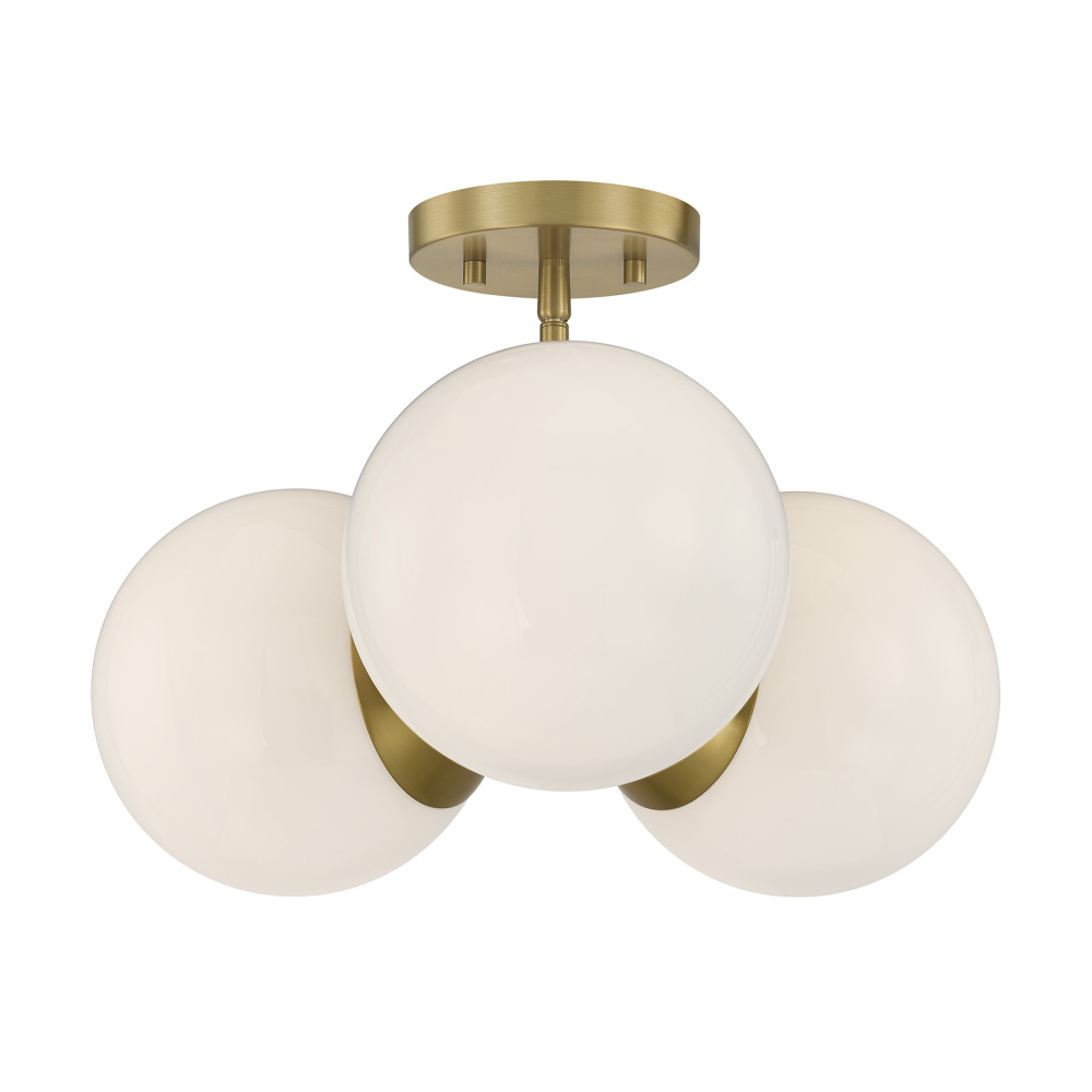 The Savoy House Turin 3-light chandelier captures the spirited essence of mid-century modern design through award-winning interior designer Dann Foley's signature lens of sophistication. A trio of opal glass orbs radiates gentle, modern elegance, complemented by a Warm Brass finish that brings rich depth. With the flexibility to install as either a hanging light or a ceiling mount, Turin adapts effortlessly to the needs of your space. It is 12" in height and 17" in width. It uses three standard size bulbs of up to 60 watts per bulb. Bulbs not included. Comes with four 12" downrods and one 6" downrod.