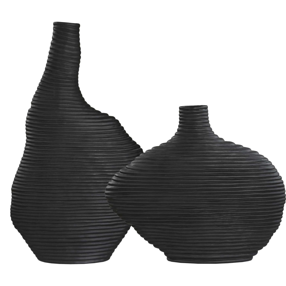 Crafted With Care Form High-quality Ceramic, These Vases Showcase A Matte Black Finish That Exudes Simplicity. The Organically Shaped Silhouettes And Stacked Ring Design Creates A Visual Appeal, Making Them A Conversation Piece That Will Draw Admiration From Guests. Sizes: S-14x12x4, L-11x18x4