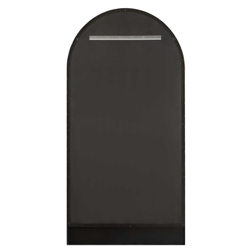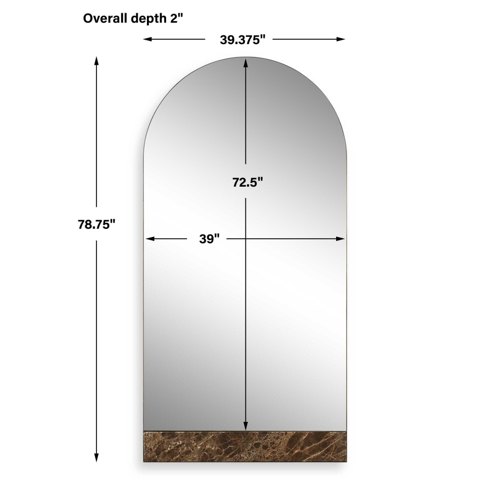 This Oversized Arch Mirror Features A Thick Dark Bronze Iron Frame, Complemented With An Emperador Brown Marble Slab With Subtle Beveled Edges.