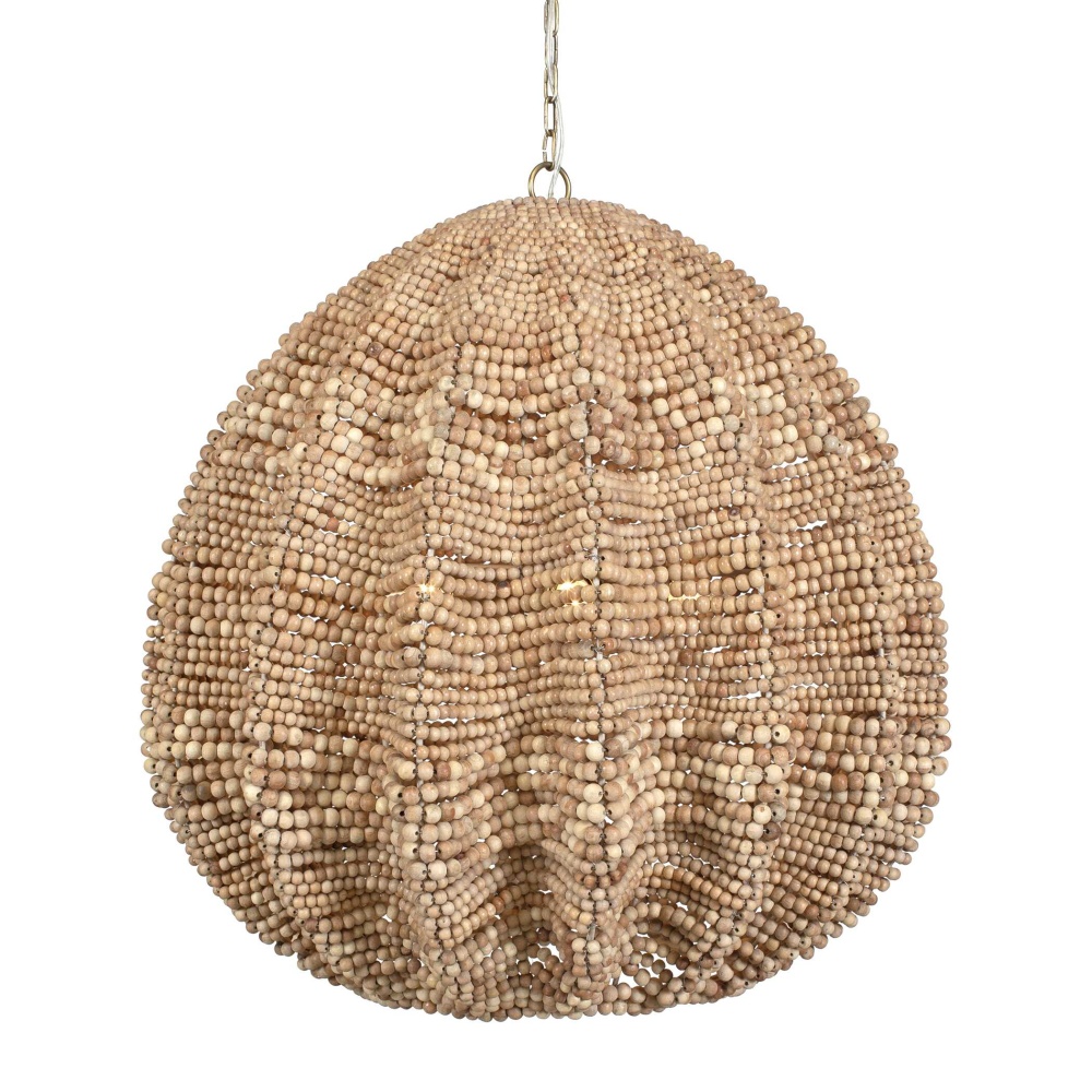 Rich Natural Wooden Beads In Various Shades Make Up An Extra Large 29" Shade On This Statement Pendant Featuring Antique Brass Details. 5-40 Watt Max Edison Sockets. Bulbs Not Included. Supplied With 15’wire, 7’ Chain For Adjustable Installation.