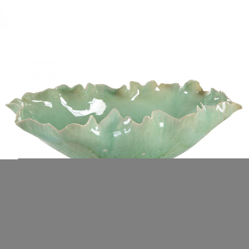 This Elegant Ceramic Bowl Features A Stunning Ruffled Edge Design, Evoking The Delicate Shape Of A Blooming Flower. Its Soft Green Glaze With A Subtle Crackle Finish Adds Texture And Sophistication, Making It An Ideal Statement Piece For Any Modern Or Classic Decor. Perfect For Displaying As A Centerpiece Or For Functional Use, This Bowl Blends Art And Practicality Effortlessly.