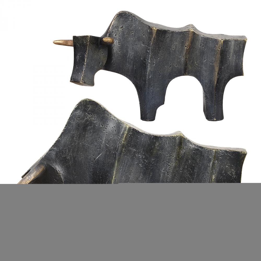 This Striking Set Of Two Bull Sculptures Features A Rich Dark Bronze Finish Complemented By Elegant Gold Highlights, Creating A Dynamic And Sophisticated Look. Each Sculpture Captures The Powerful Essence And Grace Of These Majestic Animals, Making Them Perfect Decorative Pieces For Any Space. Sizes: S-12x7x5, L-15x10x6