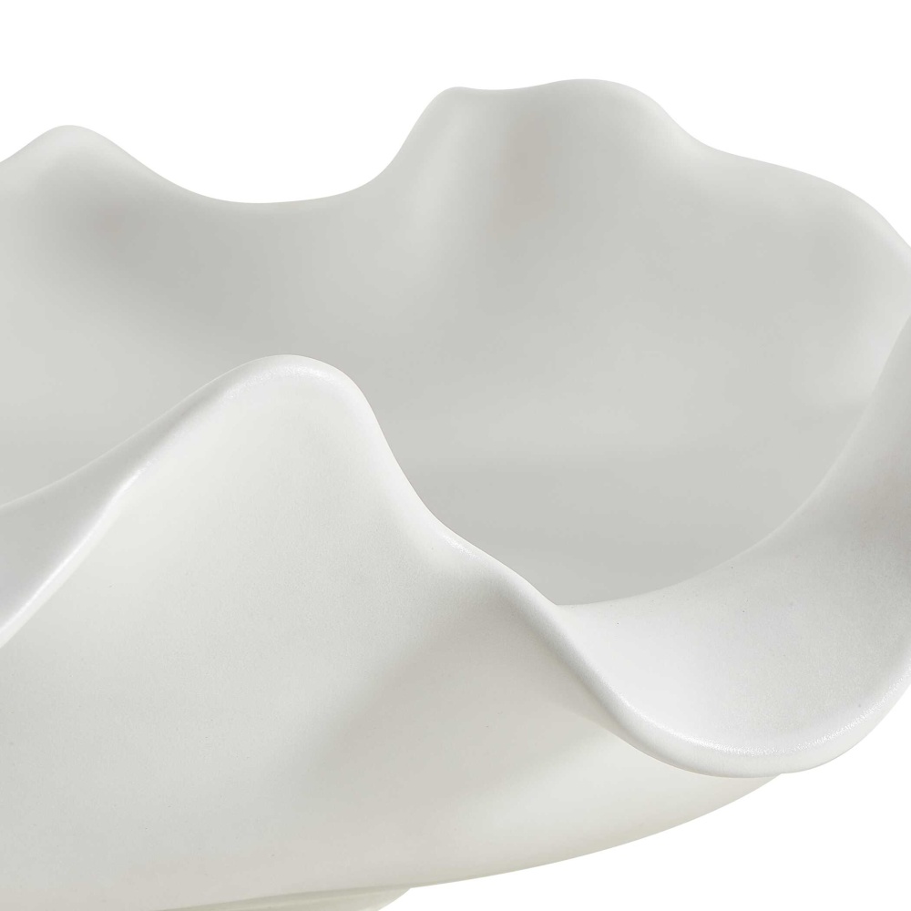 This Sculptural White Ceramic Bowl Captivates With Its Fluid, Organic Form, Reminiscent Of Ocean Waves Or Delicate Petals. A Stunning Statement Piece, Perfect For Any Space. May Be Hung On Wall Or Used As Tabletop Accessory. Safe For Outdoor Use, But Protection From Freezing Temperatures Is Recommended.