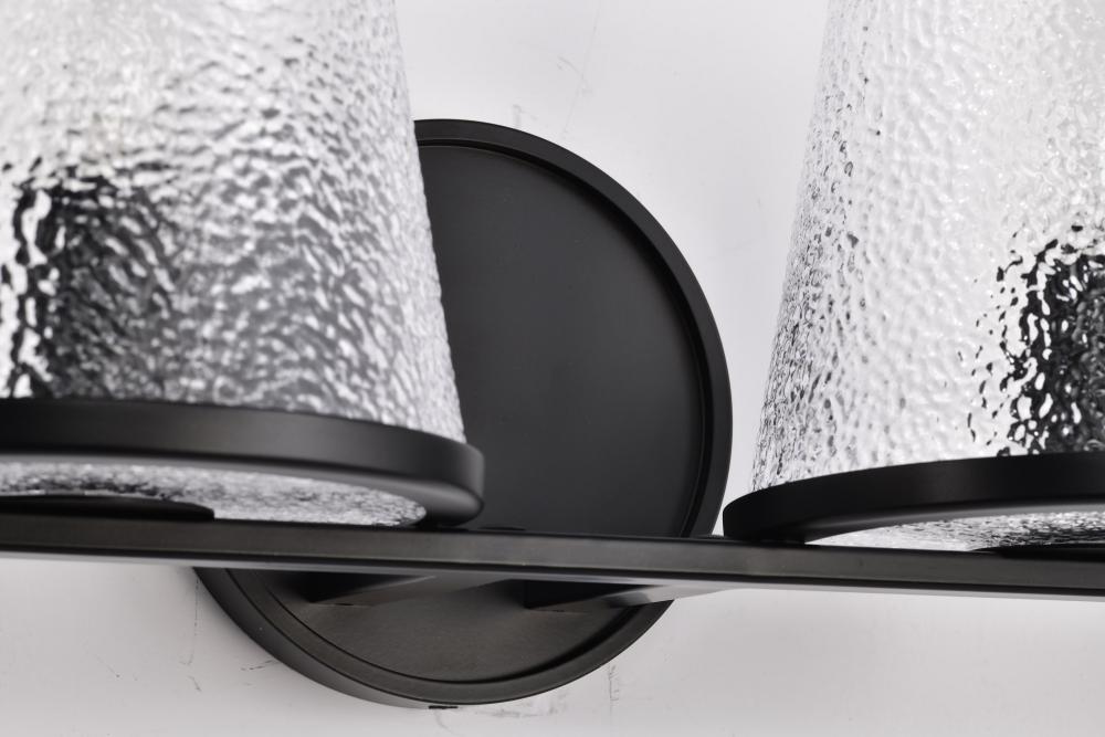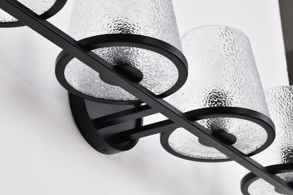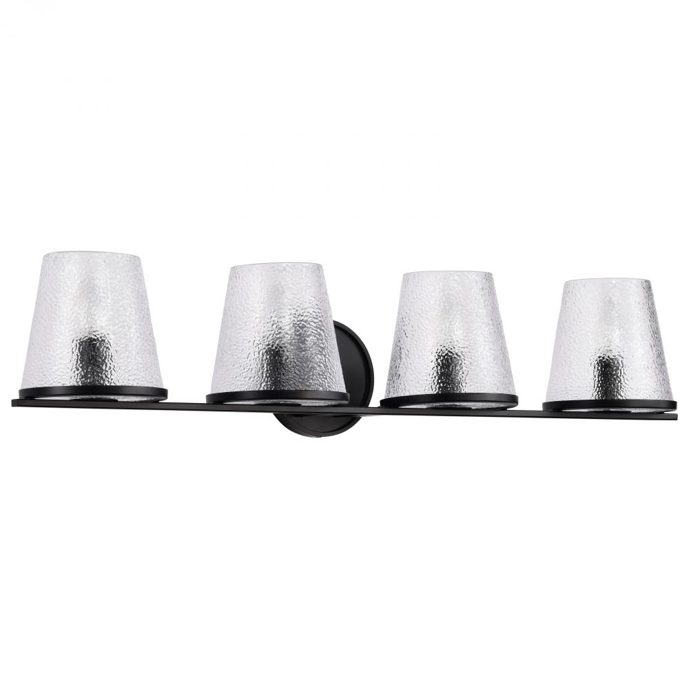 Valentine; 4 Light Vanity; Black Finish; Hammered Glass