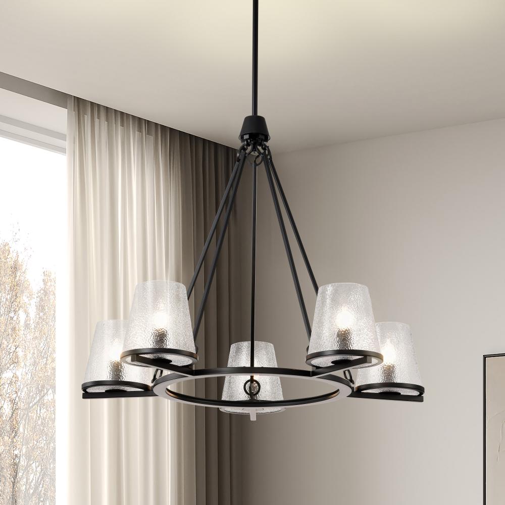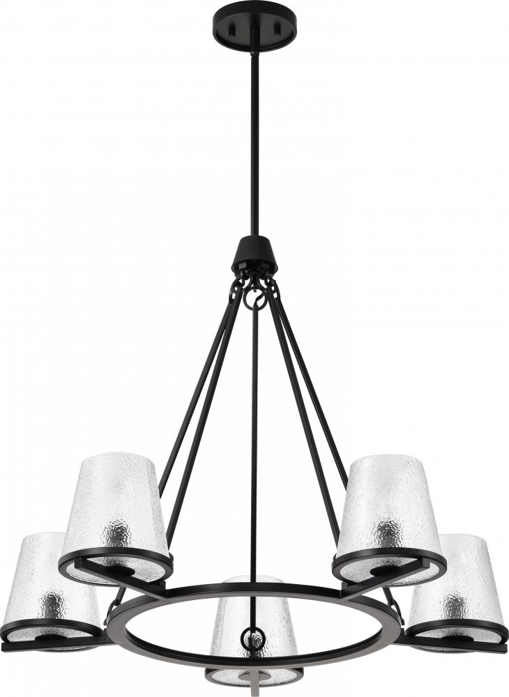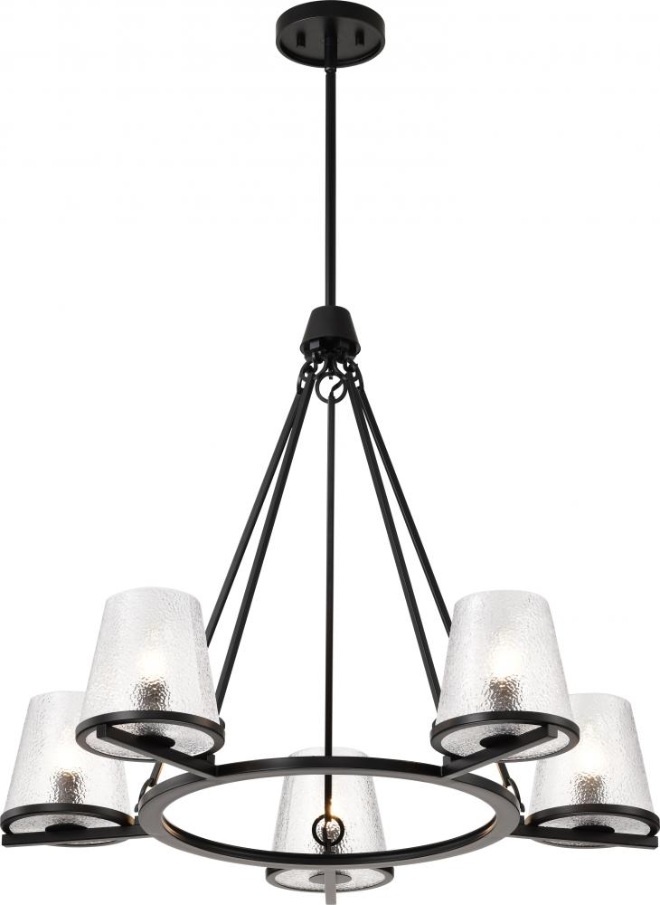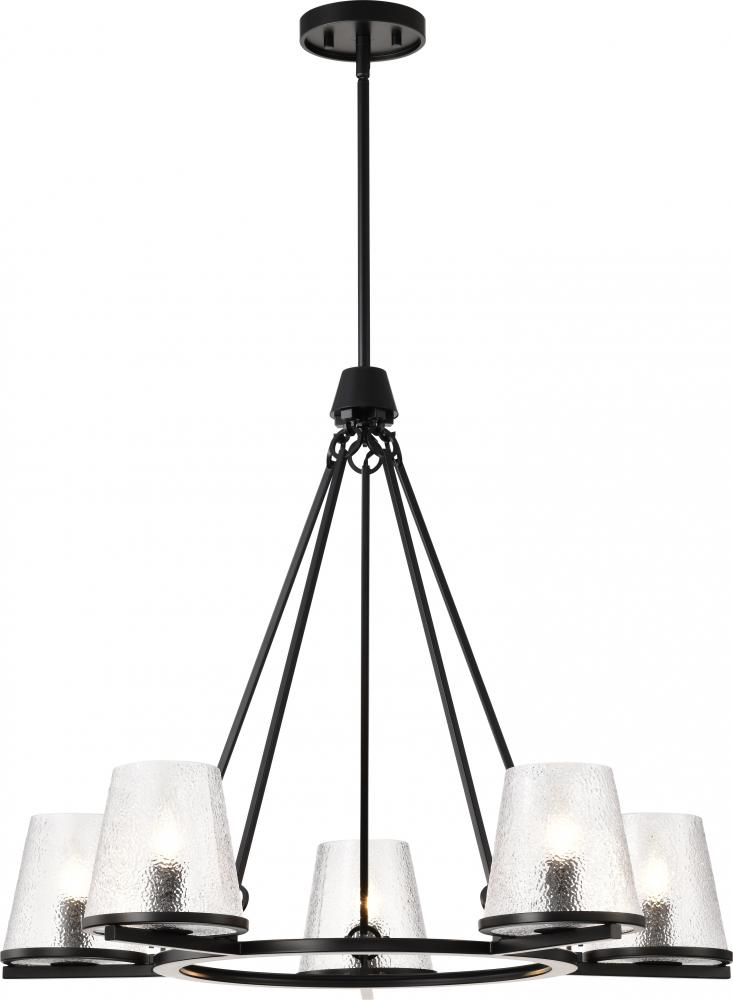 Valentine; 5 Light Chandelier; Black Finish; Hammered Glass