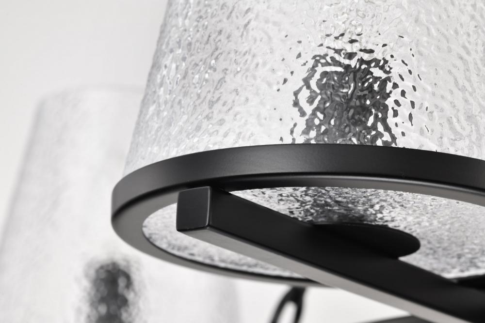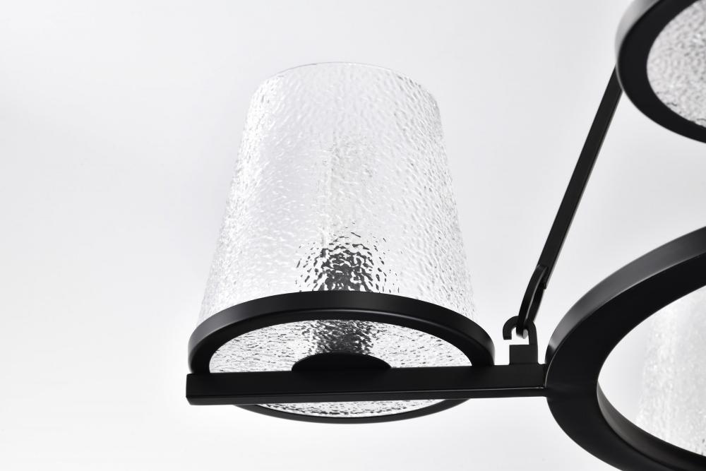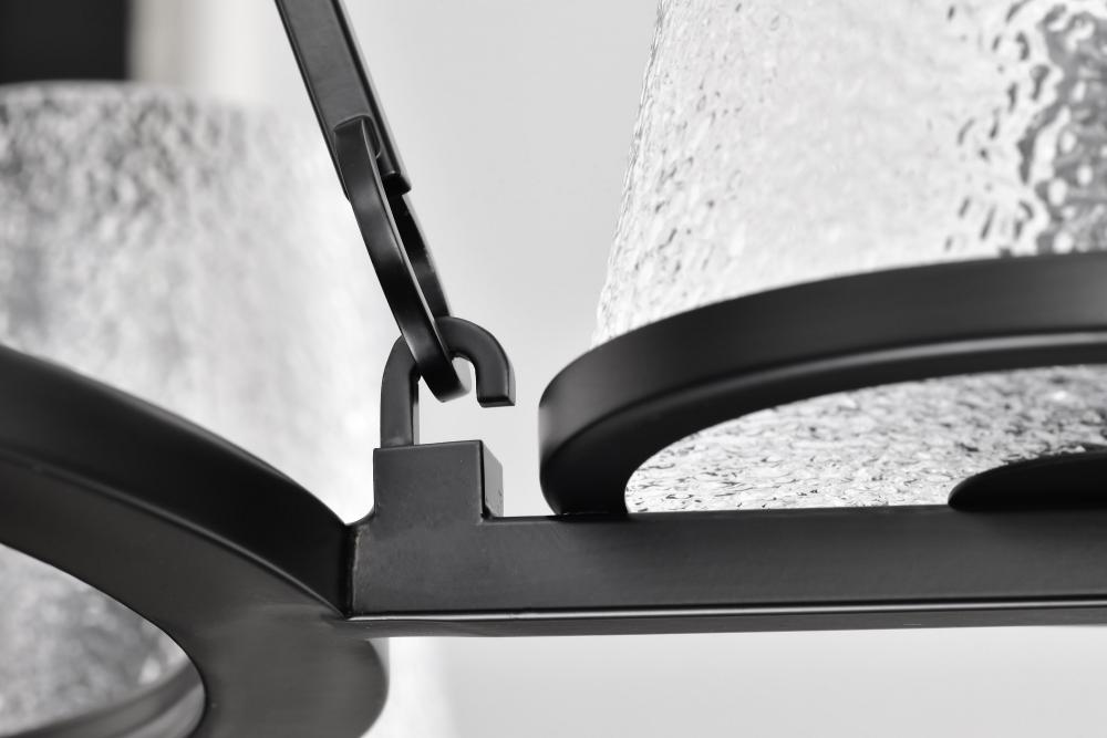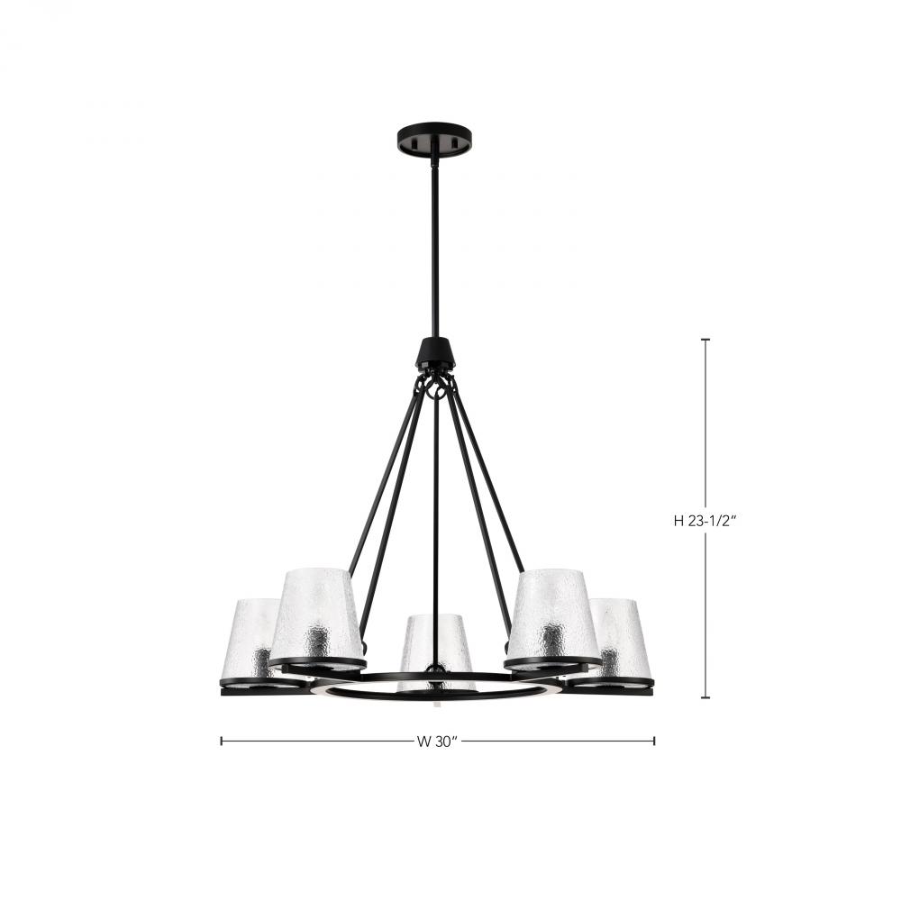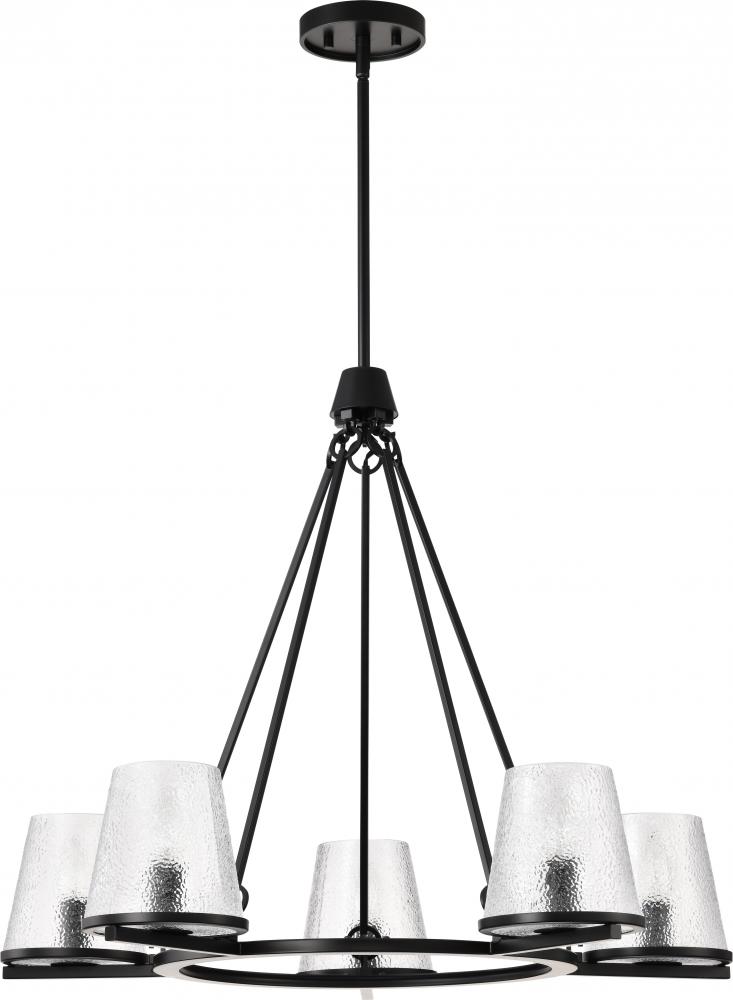 Valentine; 5 Light Chandelier; Black Finish; Hammered Glass