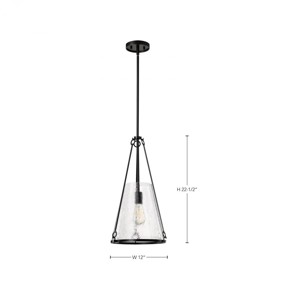 Valentine; Medium Pendant; Black Finish; Hammered Glass