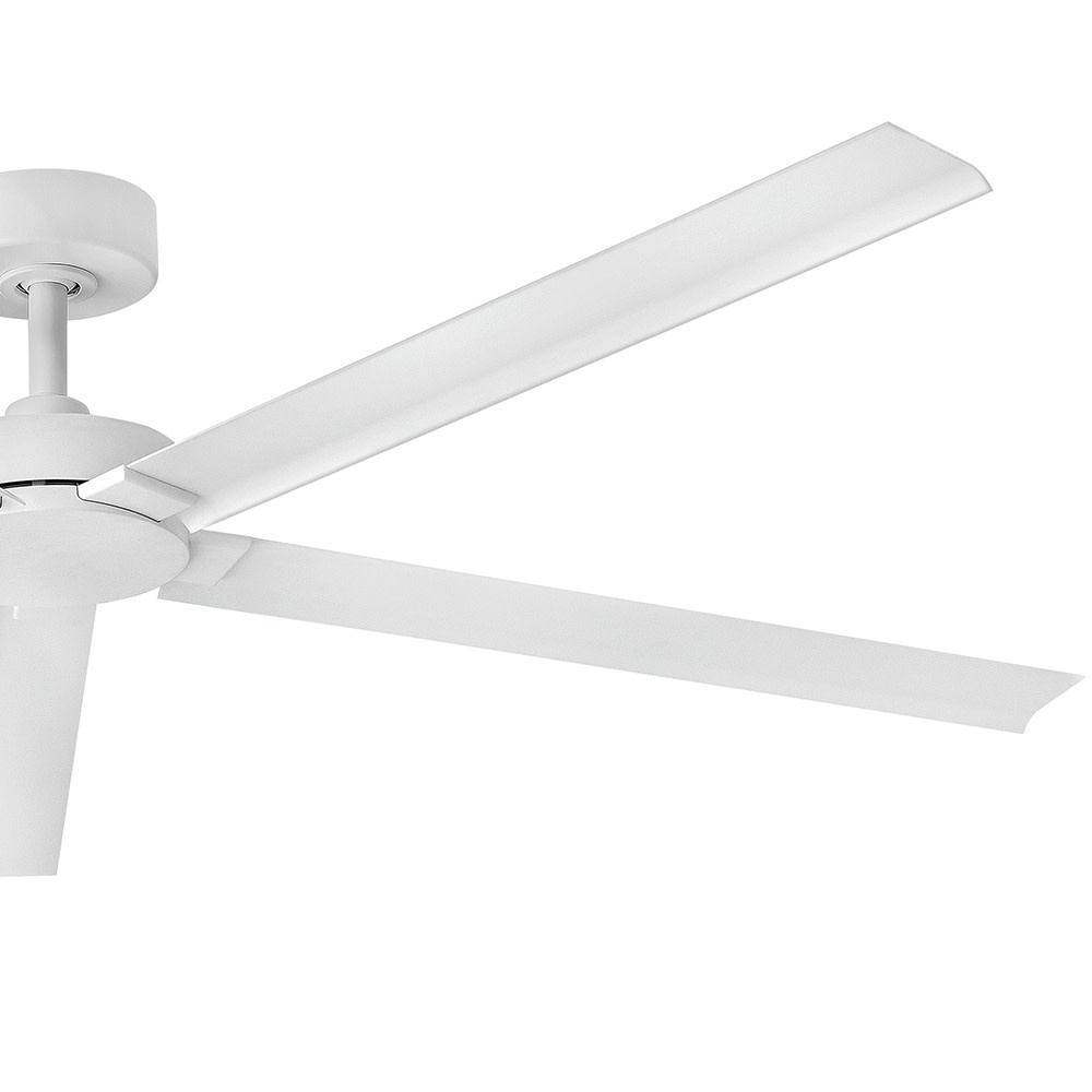 Vento's versatile wet-rated design features a solid steel construction with sturdy composite blades complemented by a chic Matte Black or Matte White finish to blend into any setting. Simple modern industrial styling is backed by a 6-speed DC motor that is WiFi enabled and ready to connect right out of the box. Operated by the HIRO control or WiFi compatible with the Hinkley App.