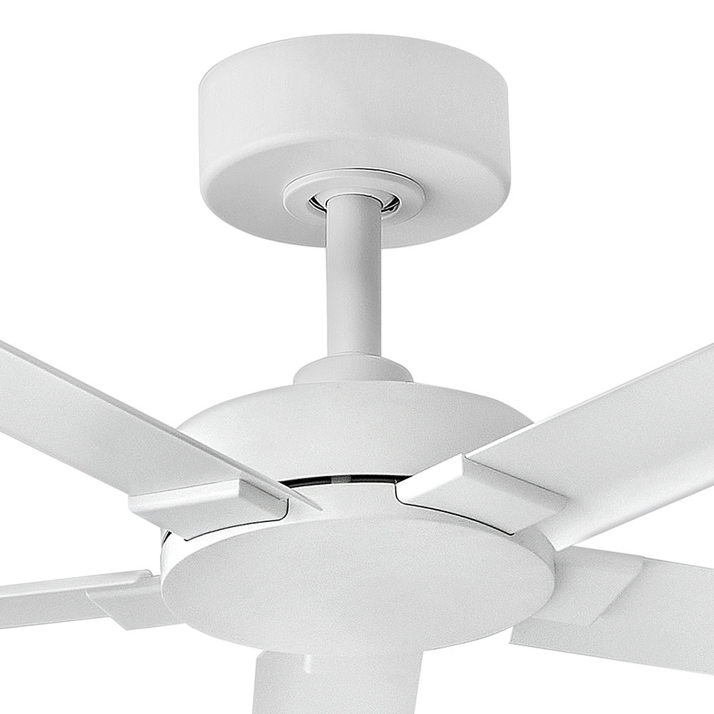 Vento's versatile wet-rated design features a solid steel construction with sturdy composite blades complemented by a chic Matte Black or Matte White finish to blend into any setting. Simple modern industrial styling is backed by a 6-speed DC motor that is WiFi enabled and ready to connect right out of the box. Operated by the HIRO control or WiFi compatible with the Hinkley App.