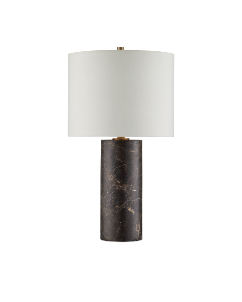 A tall column of swirling marble makes our Vespera Brown Table Lamp a clean-lined luminary with loads of personality. The beige and tan veining makes each of these coffee brown table lamps unique. The metal hardware in an antique brass finish draws out the darker tones in the lamp’s body, while the off-white shantung shade echoes the pale tones in the lustrous marble.