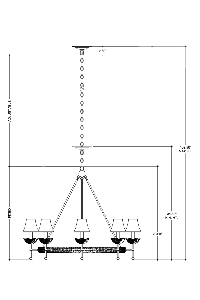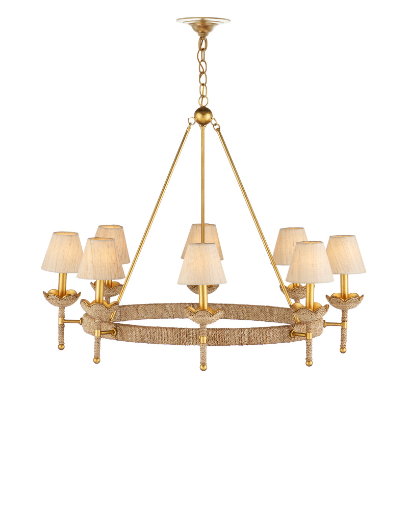 The Vichy Chandelier was created by Suzanne Duin, who founded the Houston shop and design studio Maison Maison, and is known for a keen eye in sourcing authentic French antiques and home accessories from around the globe. Each piece in her line of woven light fixtures is handmade by artisans in Southeast Asia; the Vichy an example in abaca rope and wrought iron in a mix of contemporary gold leaf and contemporary gold finishes. The finely shaped braided edges reflect Parisian style and the overall composition will brings both texture and French flair. Adjustable from 34.5" to 102.5" with use of included chain/rod kit/cable. If your space calls for a longer drop, additional chain/rods/cable is available for purchase.