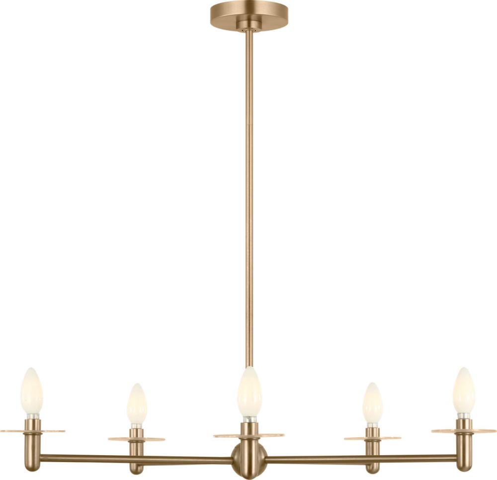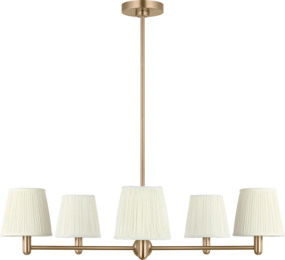 The Vilera 5-Light Chandelier features five white fabric shades set around a slender radial frame. Each shade diffuses light evenly, softening the geometric arms and creating a comfortable glow. Scaled for dining rooms, living areas, or bedrooms, this chandelier brings a balanced presence with a relaxed texture.