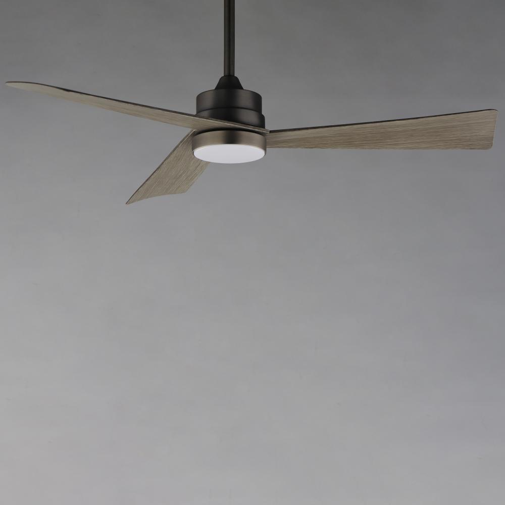 Sharp angular blades come together at the center housing of this fan for a modern, yet transitional look. Available in finishes that match most interior spaces, select from Matte Black, Satin Nickel with Greywood, Natural Aged Brass with White Blades and C
