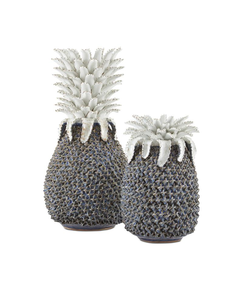 The Waikiki Large Blue Pineapple decorative accessory is handmade of stoneware by women artisans living at the border of Burma and Thailand. From the Hawaiian shores to 1940s Miami, the pineapple has long been a symbol of hospitality. Place this powdery blue and white ceramic sculpture prominently in a room to make a bold statement.