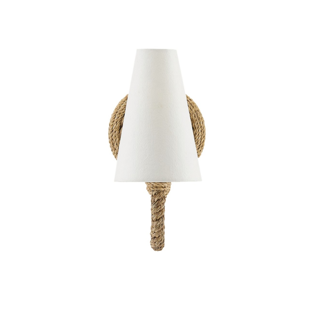 The Wallis Wall Sconce is wrapped in rope in a variety of thicknesses to make the natural material covering the fixture feel elegantly sophisticated. The rope sconce is in our Bunny Williams Collection proving how masterful the designer is at using elemental materials in surprising ways. Shade not included.