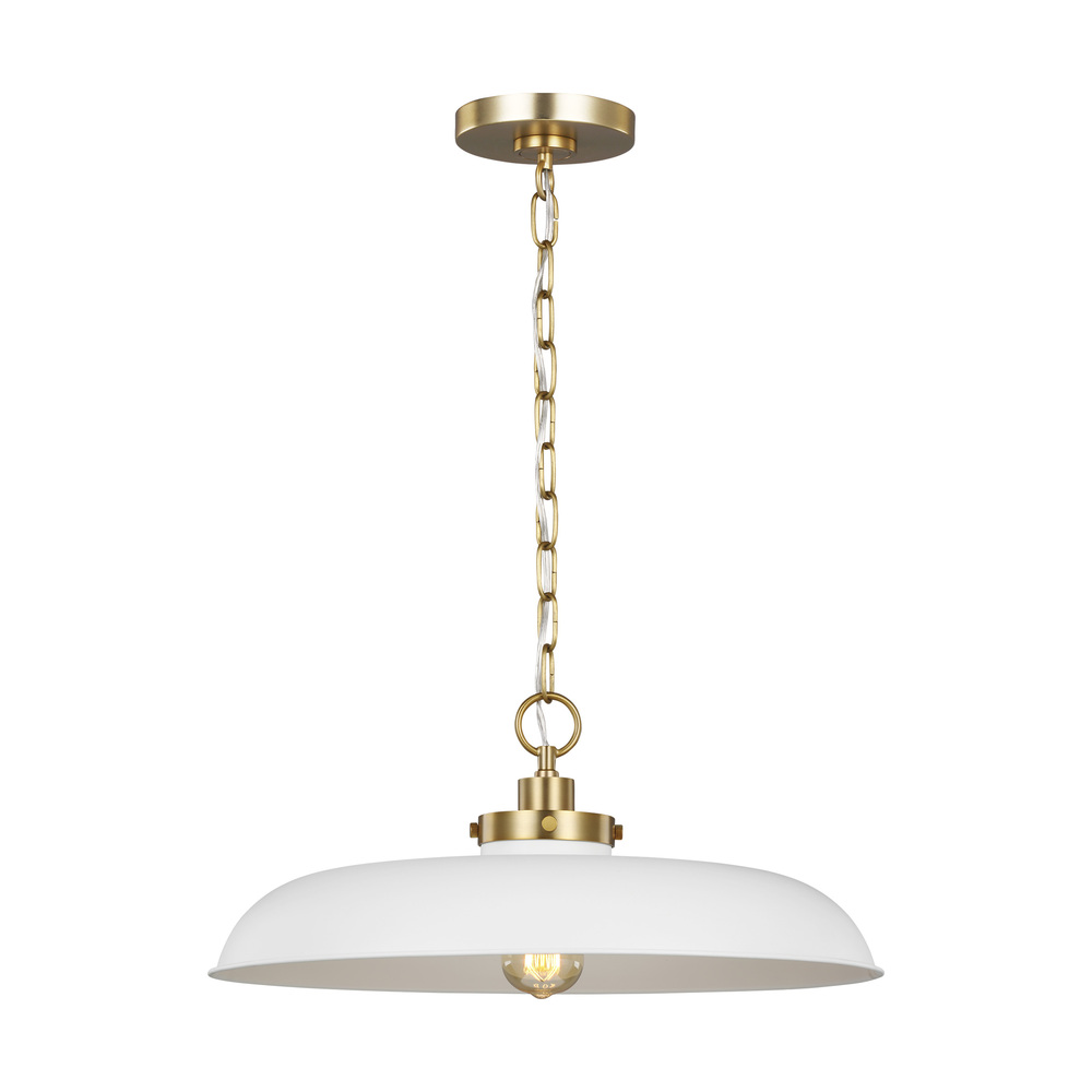 Inspired by various classic utility silhouettes - from factory lighting to barn sconces - capped by contrasting metal hardware. Each shade of the Wellfleet series by Chapman & Myers is available multiple sizes of 3 versatile profiles; either a flat farm dome, a traditional factory dome, or tapered cone. The shades are available with either a black or white finish and are paired with either a burnished brass or polished nickel collar, chain and canopy.