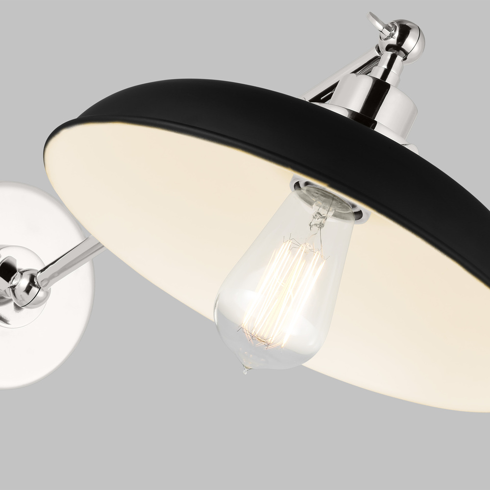 The simple industrial-inspired Wellfleet wide single arm sconce features a metal wide shade that will tie into a number of design aesthetics