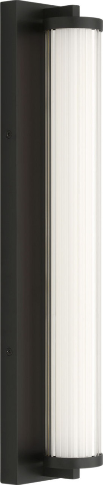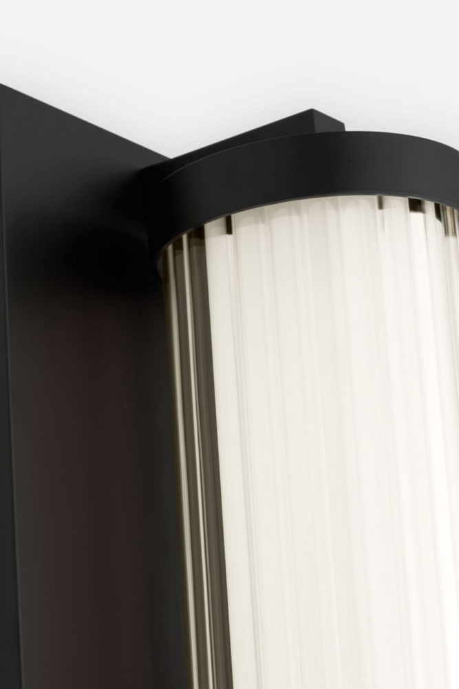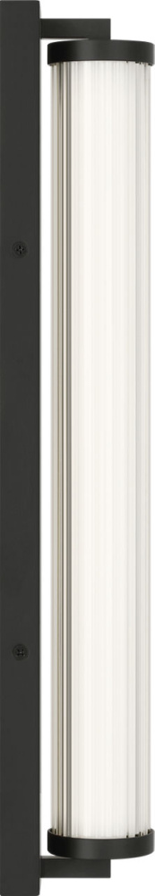The Weston 22" Vanity combines linear symmetry with material depth, featuring a ribbed glass lens framed by a full-length metal backplate. Dedicated LED technology delivers efficient, ambient light while the textured diffuser enhances clarity and softens glare. suited for horizontal mounting in bathrooms and powder rooms where diffused illumination and visual structure are required.