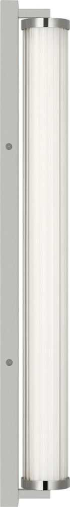 The Weston 28" Vanity combines linear symmetry with material depth, featuring a ribbed glass lens framed by a full-length metal backplate. Dedicated LED technology delivers efficient, ambient light while the textured diffuser enhances clarity and softens glare. suited for horizontal mounting in bathrooms and powder rooms where diffused illumination and visual structure are required.