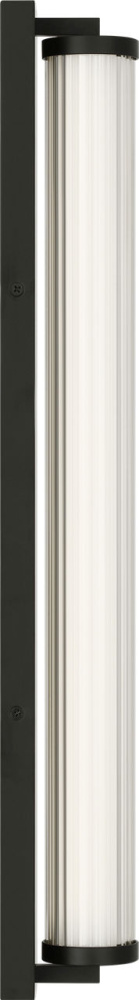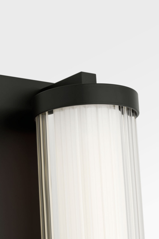The Weston 28" Vanity combines linear symmetry with material depth, featuring a ribbed glass lens framed by a full-length metal backplate. Dedicated LED technology delivers efficient, ambient light while the textured diffuser enhances clarity and softens glare. suited for horizontal mounting in bathrooms and powder rooms where diffused illumination and visual structure are required.